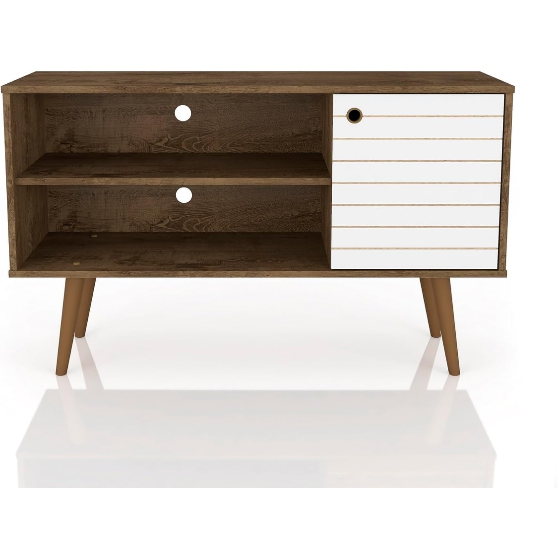 Mid Century TV Stand for Up to 46" TVs, 43" Wide, Rustic Brown/White