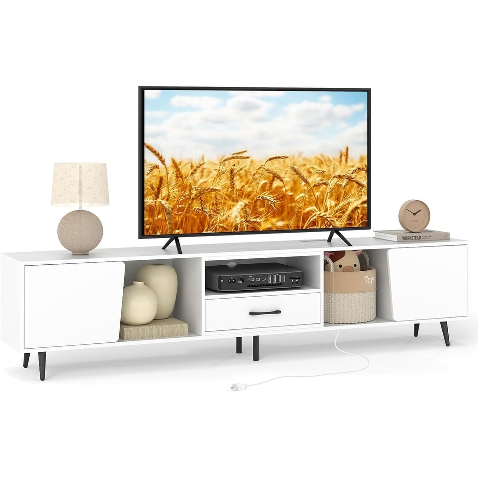 Modern TV Stand for 70" Screens, 63" Entertainment Center with Drawer & Open Shelves, Living Room & Bedroom Media Console, Black