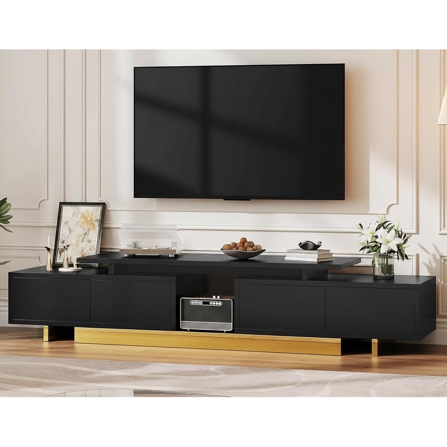 Adjustable TV Console 63-89 Inches, Modern Stand with Doors and Open Shelf, Living Room
