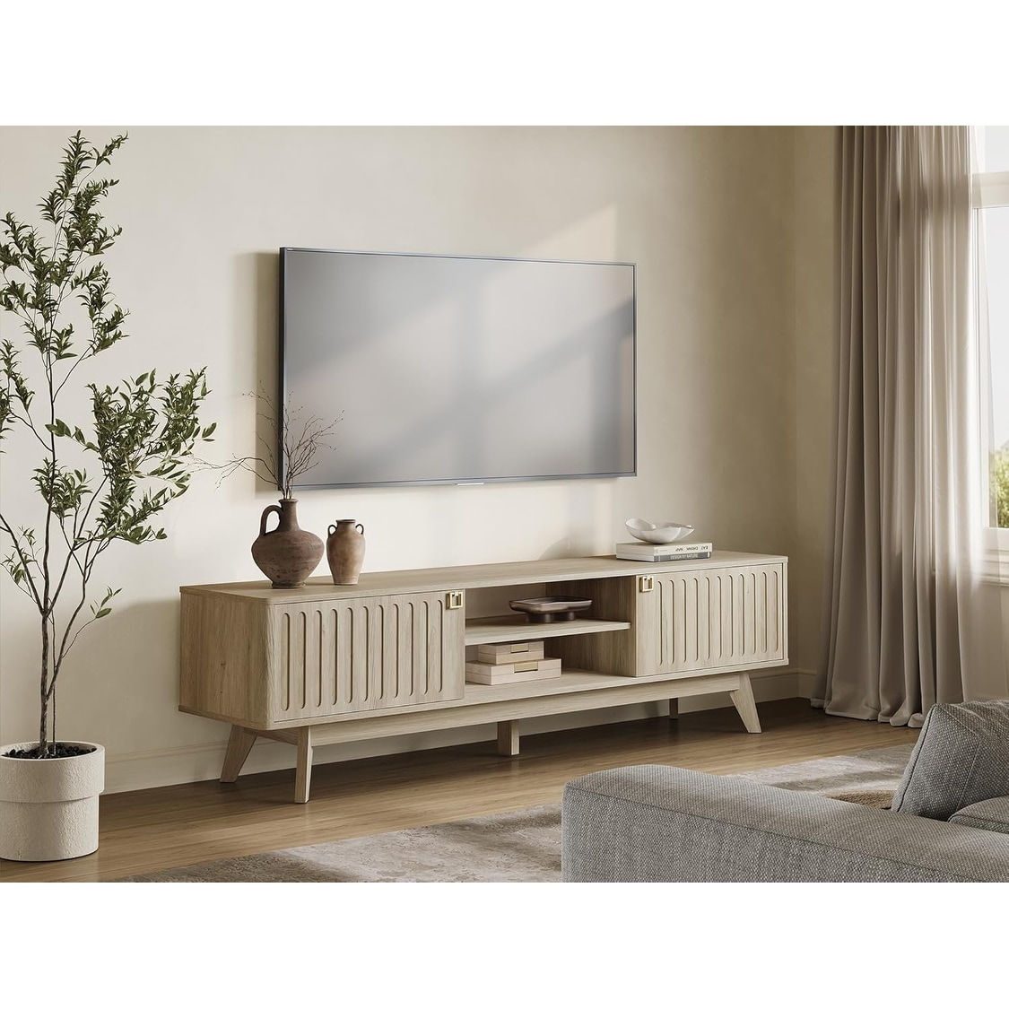 TV Stand for 65-80 Inch, 70" Wide with Storage, Fluted-Door Media Console for Living Room or Hallway
