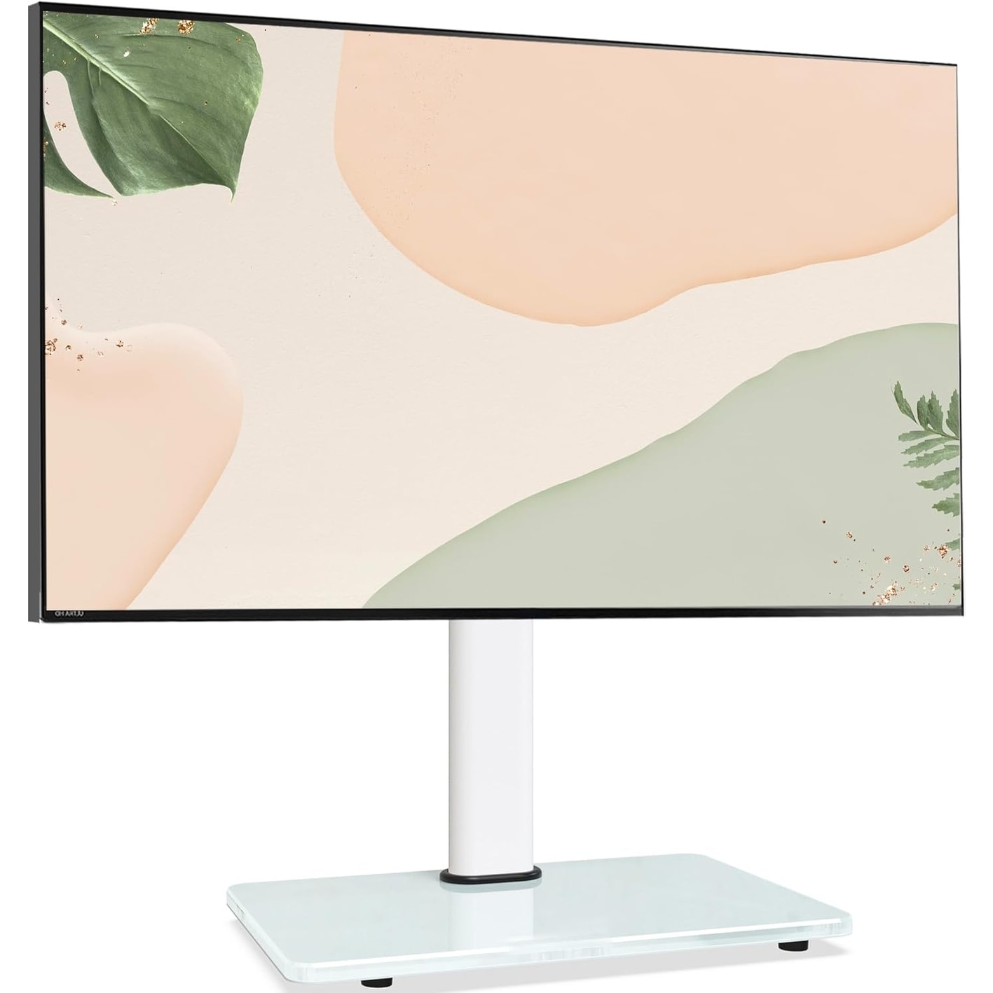 Universal TV Stand for 32-75 inch TVs, Swivel & Tilt Adjustable, Heavy Duty Glass Base, White