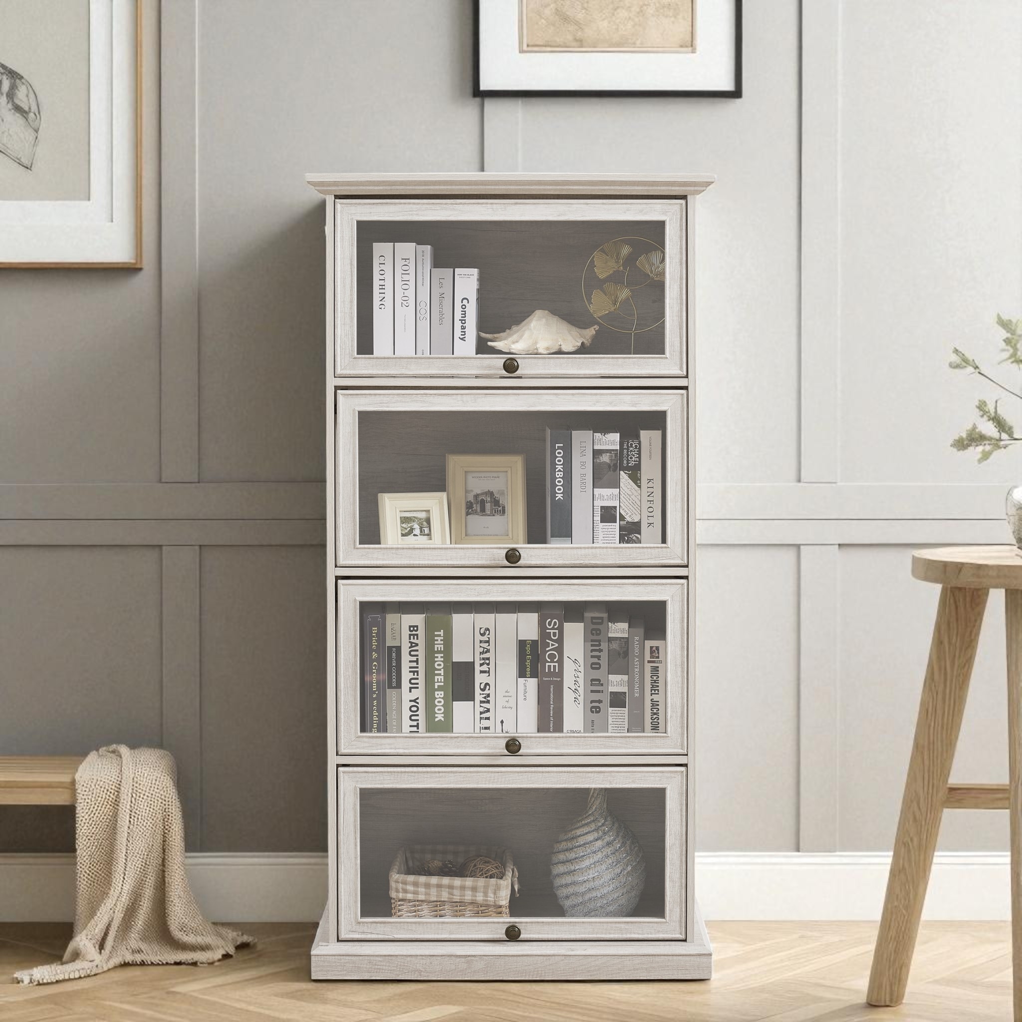 4-Tier Glass Display Cabinet with Flip-Up Doors, Curio Storage Showcase and Bookcase Organizer