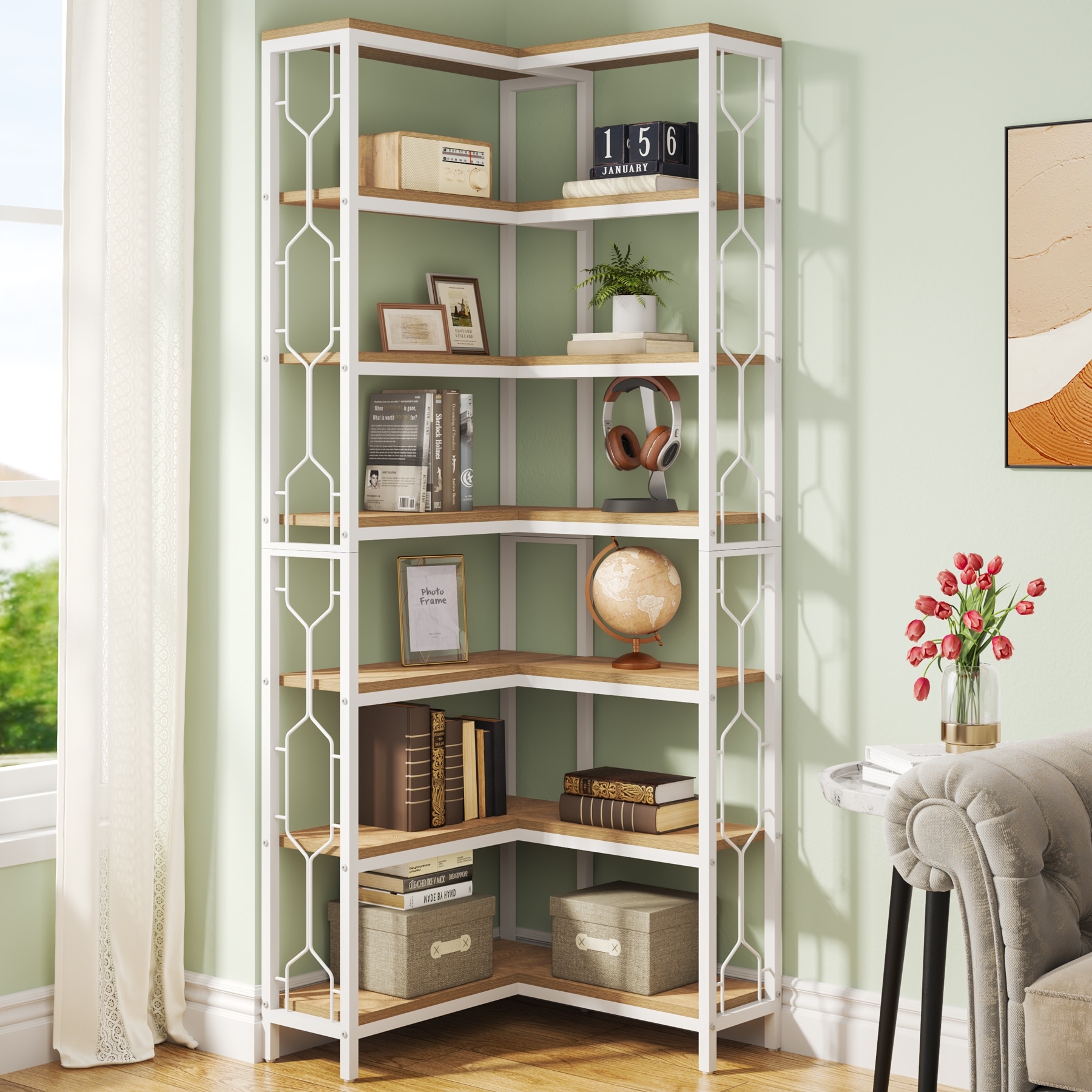 7-Tier Corner Bookshelf, White Corner Shelf Modern Etagere Bookcase