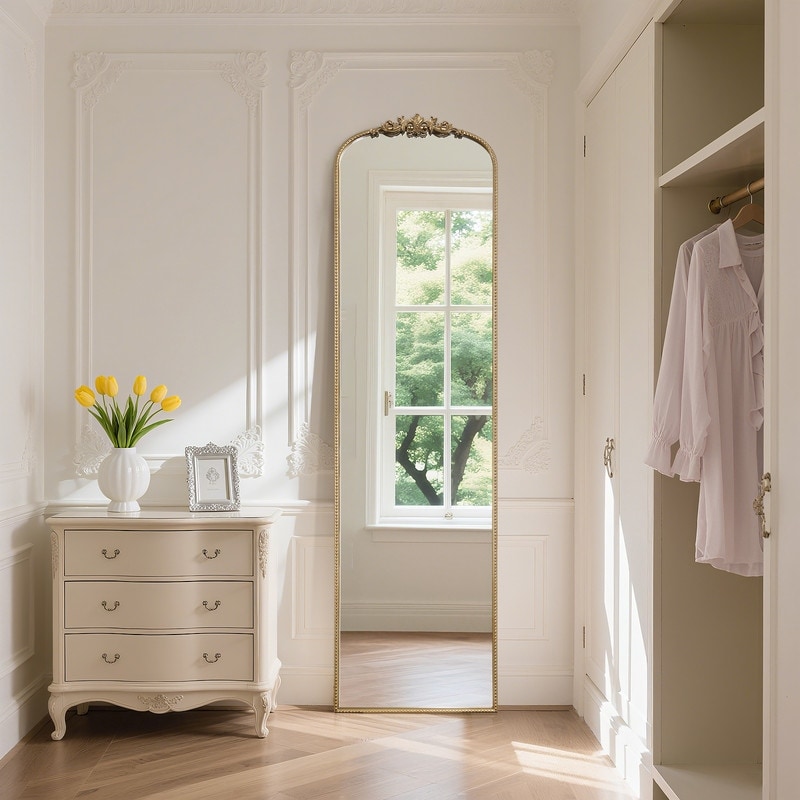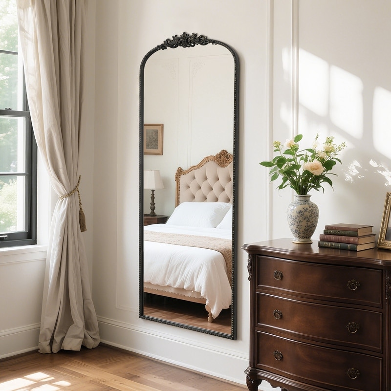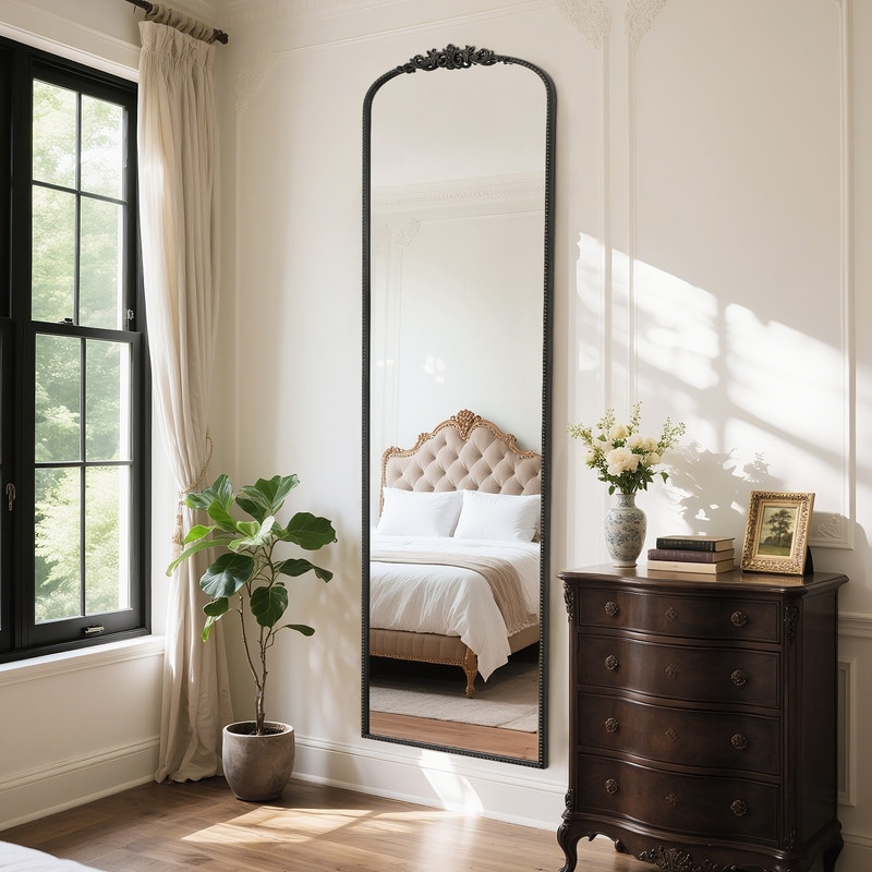 Vintage Full Length Metal Framed Arched Decorative Floor Mirror