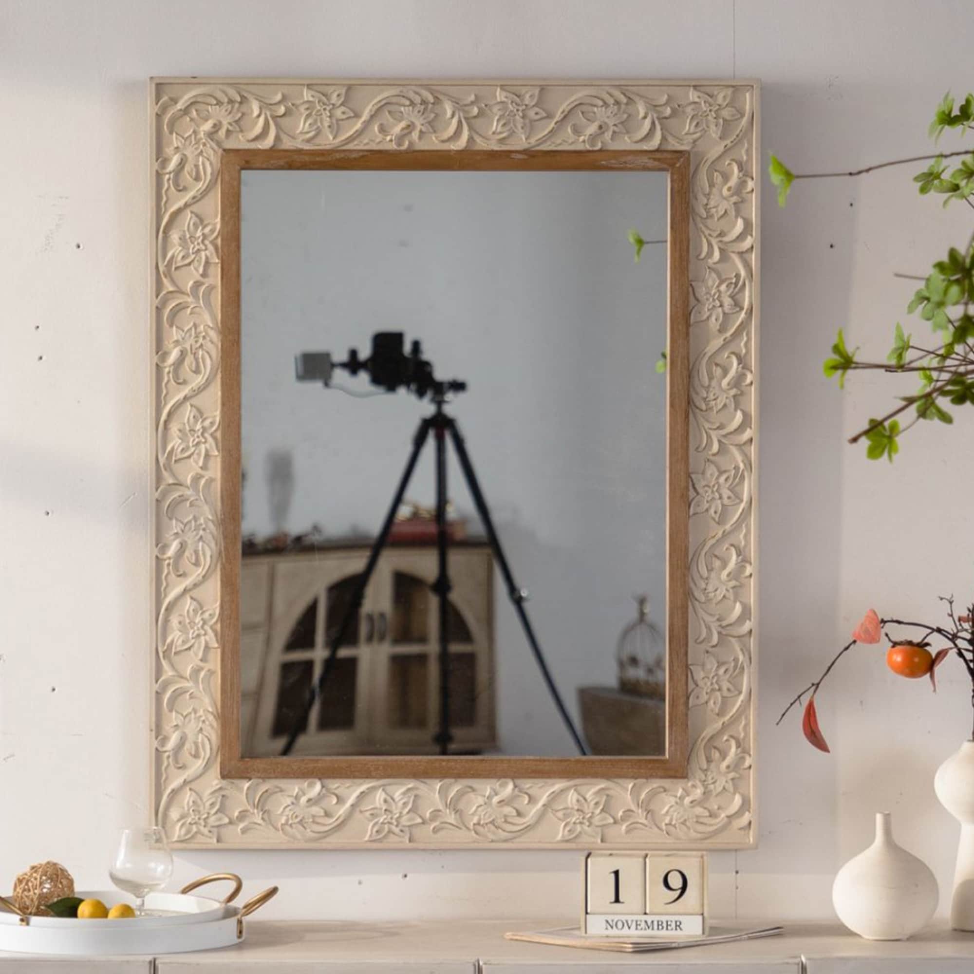 Vintage Carved Pattern Rectangular Wall Mirror - Natural