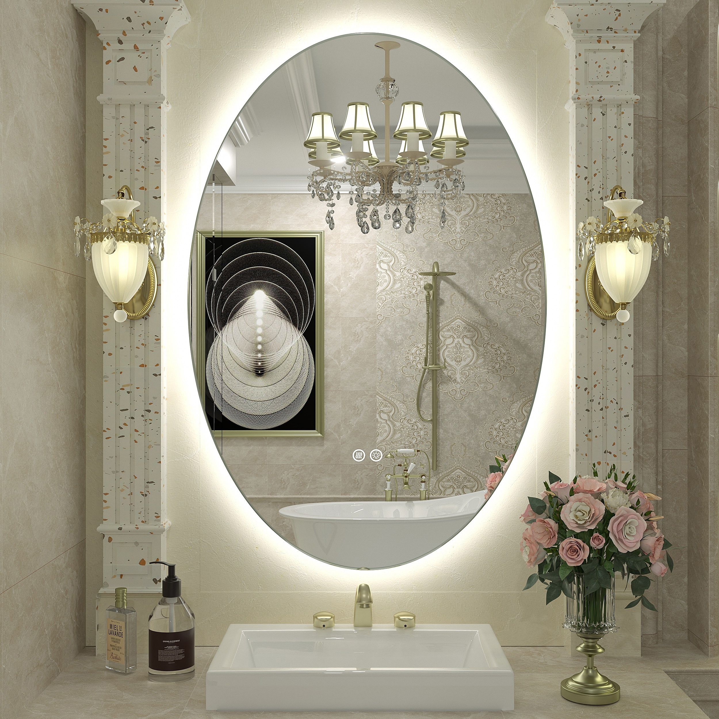 UL Certified Multiple shapes Frameless Anti-Fog 3 Colors Dimmable LED Backlit Wall Bathroom Vanity Mirror