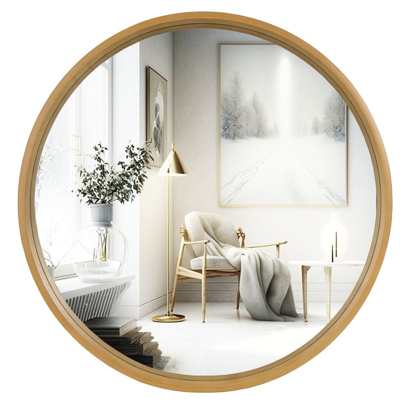 Classic Wooden Frame Farmhouse Round Wall Mirror