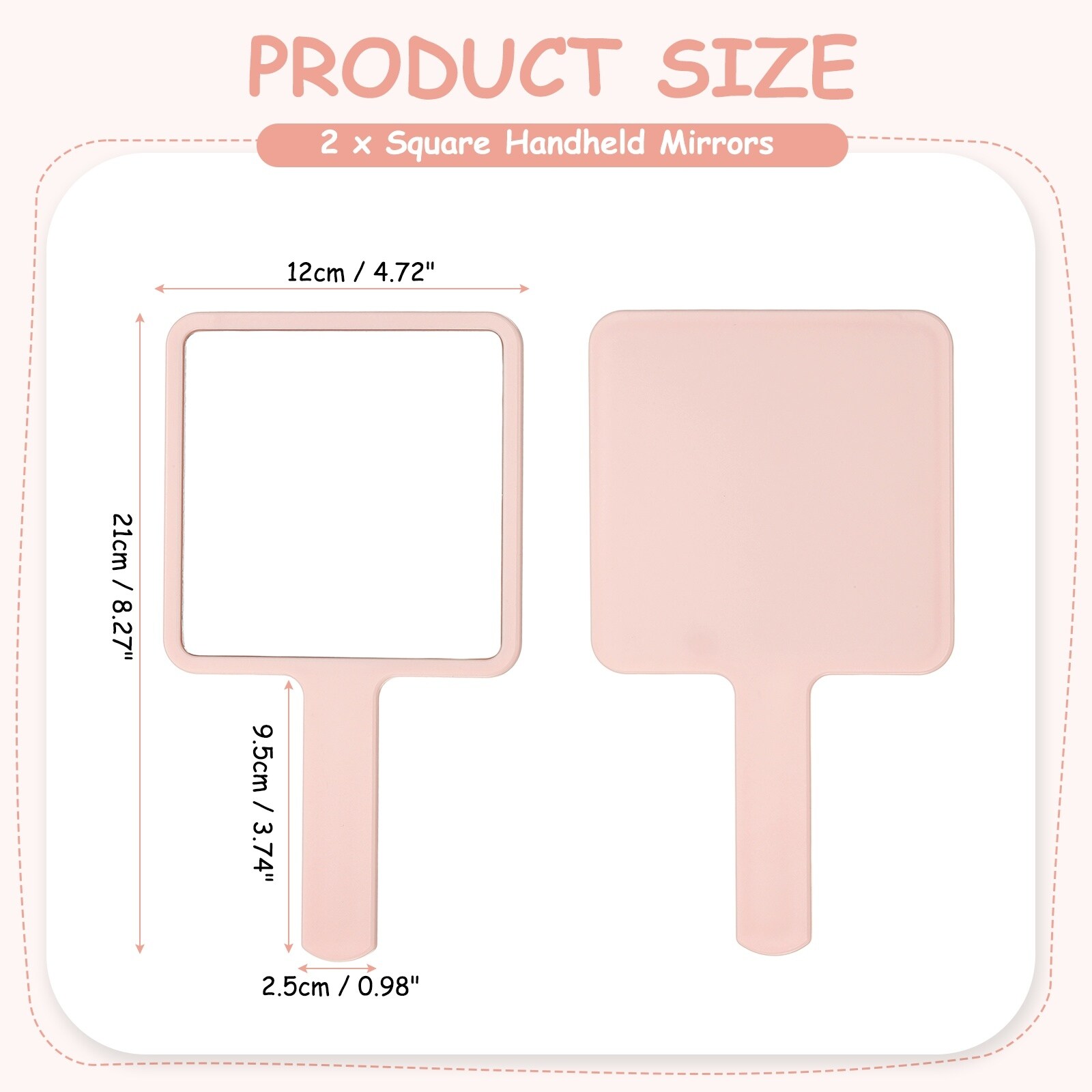 Hand Mirror with Handle, Square Travel Makeup Mirror Single-Sided Portable for Women Girls Cosmetic Lash Home