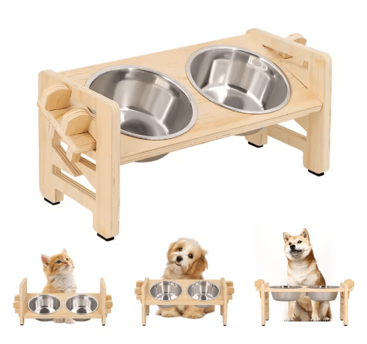 Elevated Adjustable Pet Feeder With Tilted Stainless Steel Bowls puppy Bowls