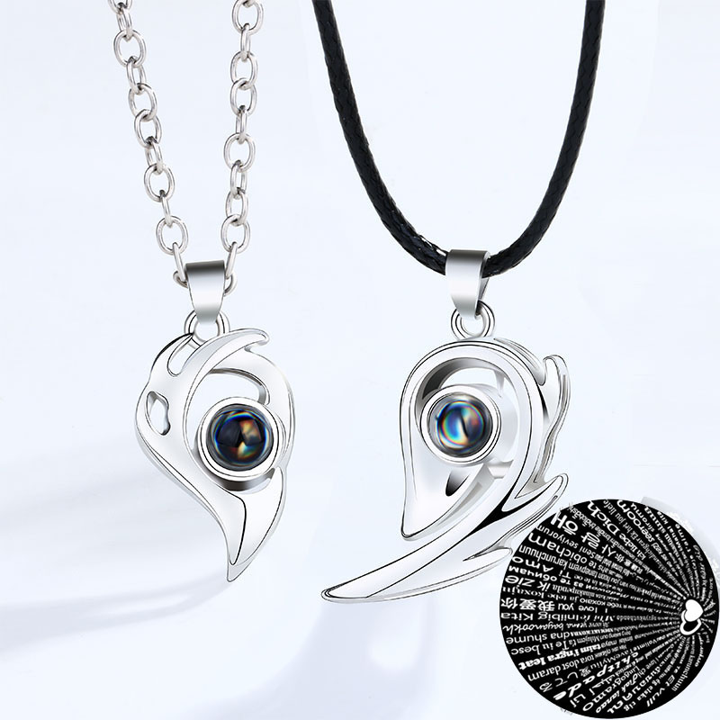 Heart Projection Magnetic Distance Couple Necklace, I Love You, Matching Pendant Jewelry white Black