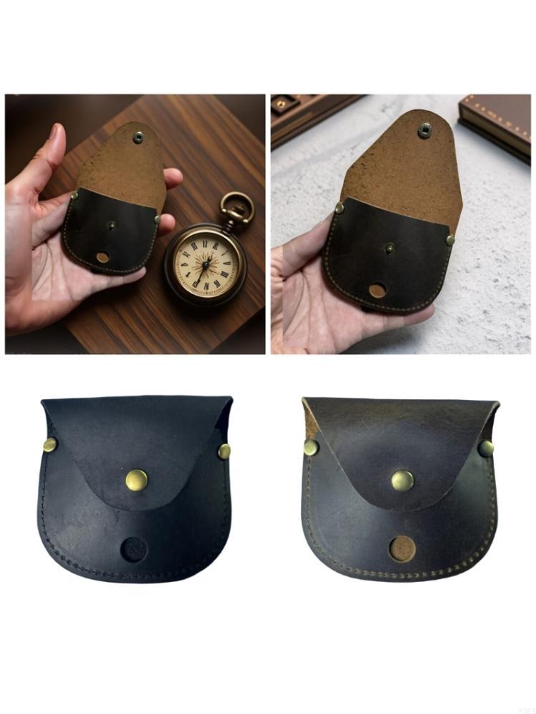 Vintage Brass Pocket Compass Necklace With Leather Case, Antique Compass Pendant For Hiking Travel Gift black