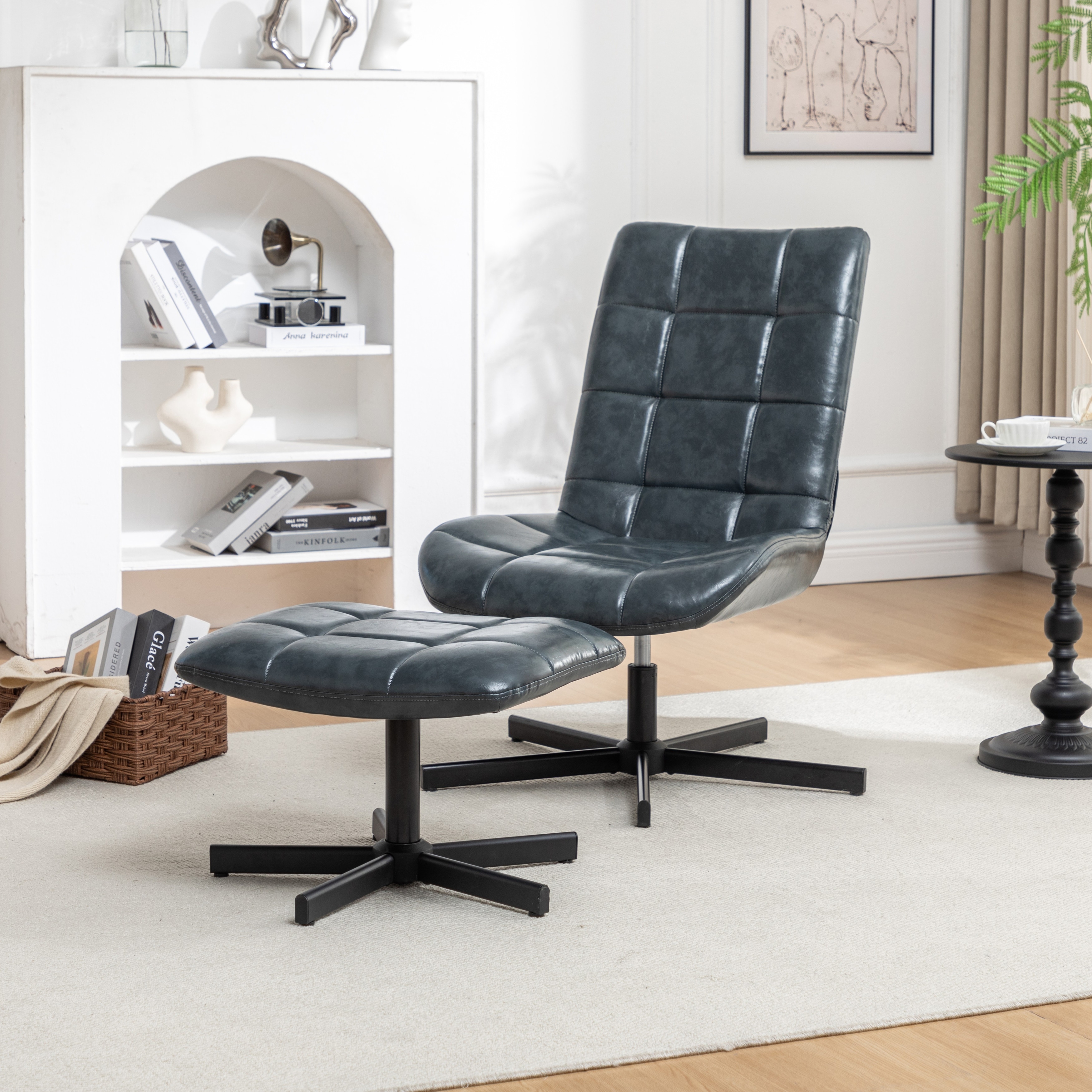 2-Piece Seating Set, Faux Leather Tufted Accent Chair and Ottoman