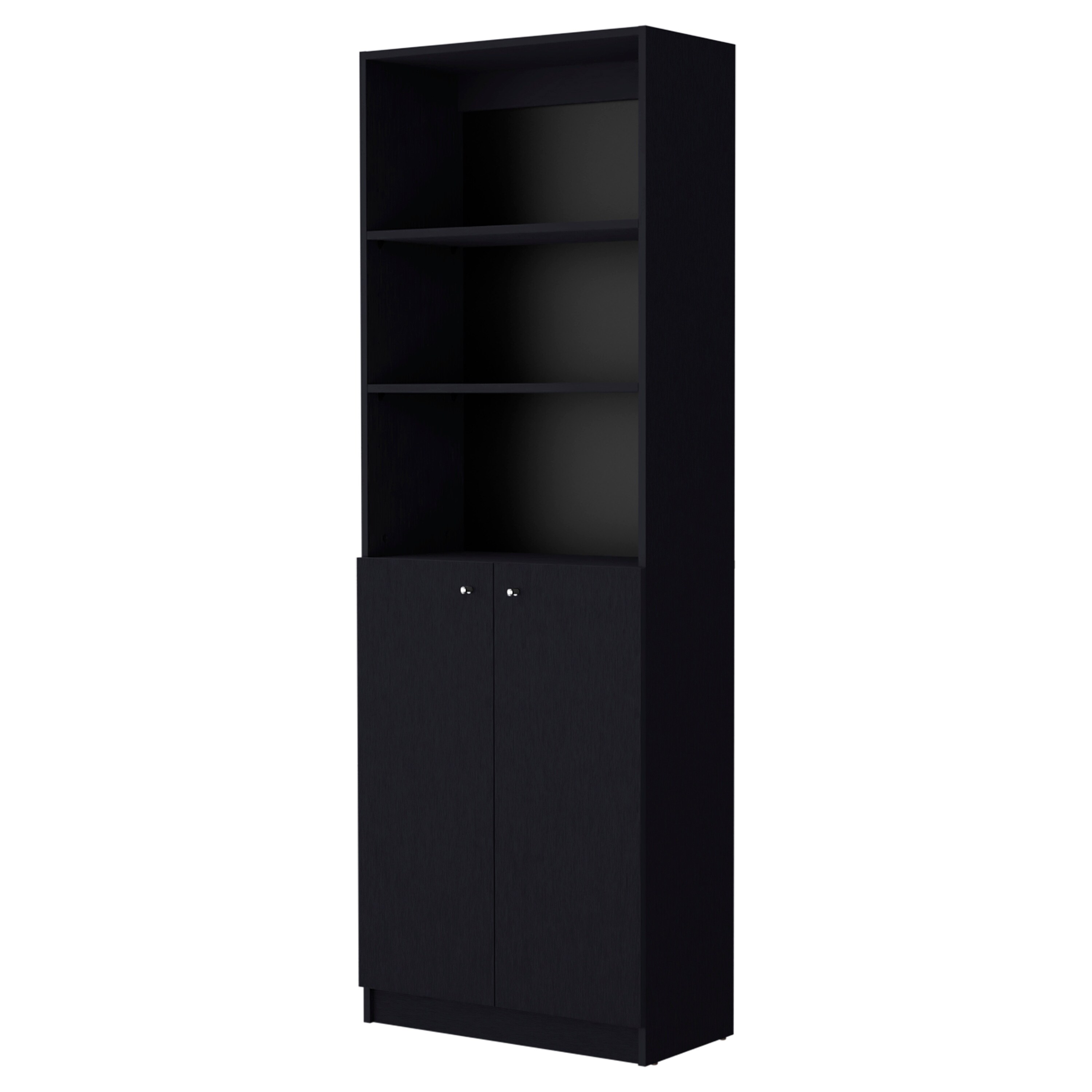 Bookcase, Metal Hardware, Three Shelves, Double Door Cabinet -Black