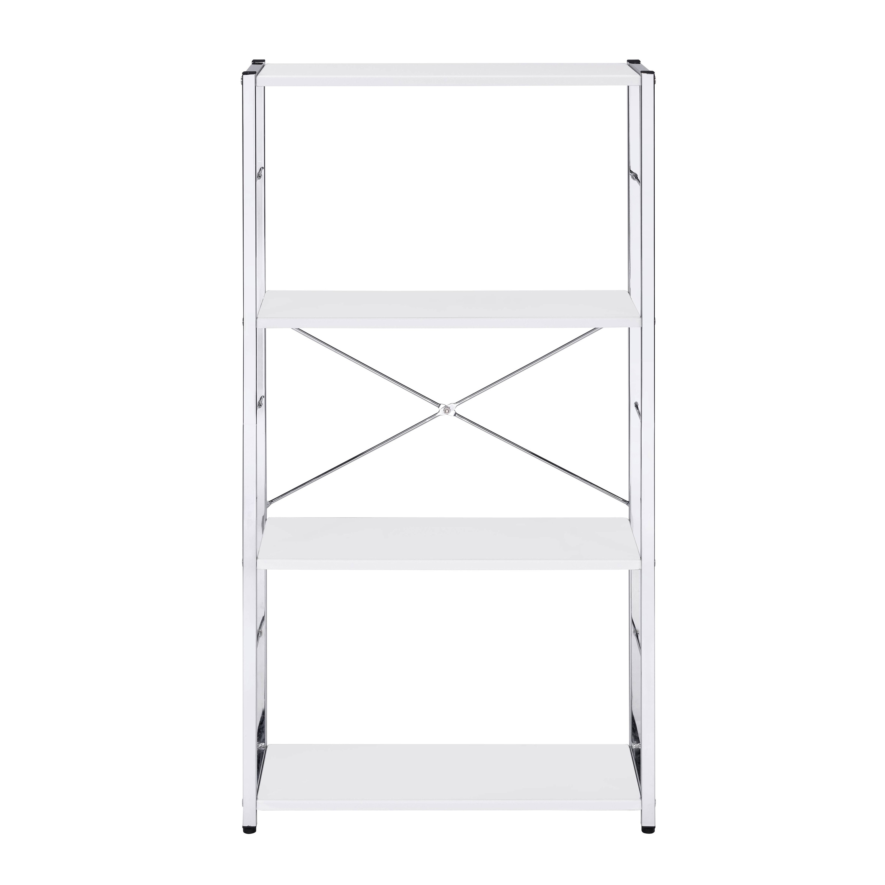 White and Chrome 4-Tier Rectangular Bookshelf