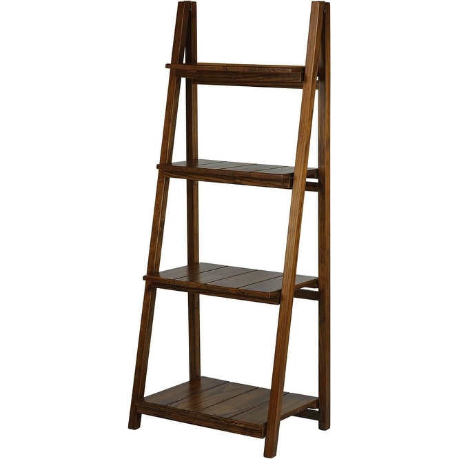 4-Shelf Folding Bookcase in Warm Brown, Solid Pine, No Assembly Required