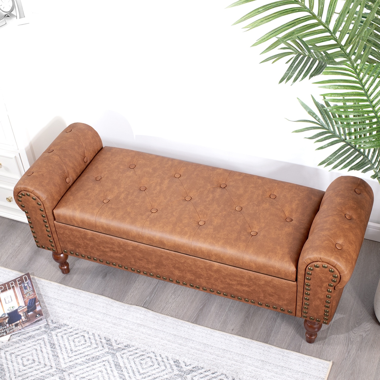 Tufted PU Leather Storage Ottoman - Dark Brown Functional Accent Piece
