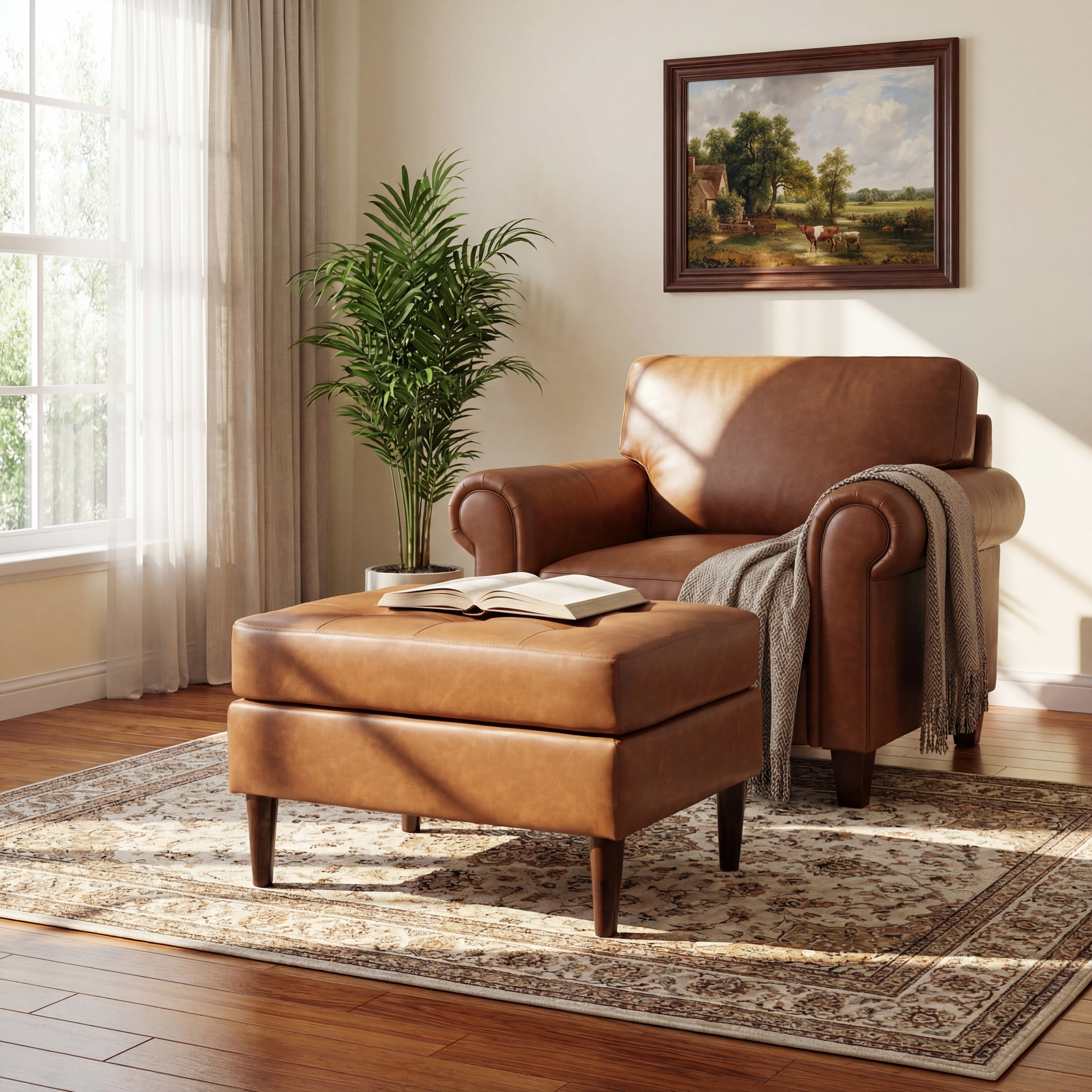Atrium Collection Lino Ottoman - Oversized Large Couch Ottoman & Lounger - Faux Leather