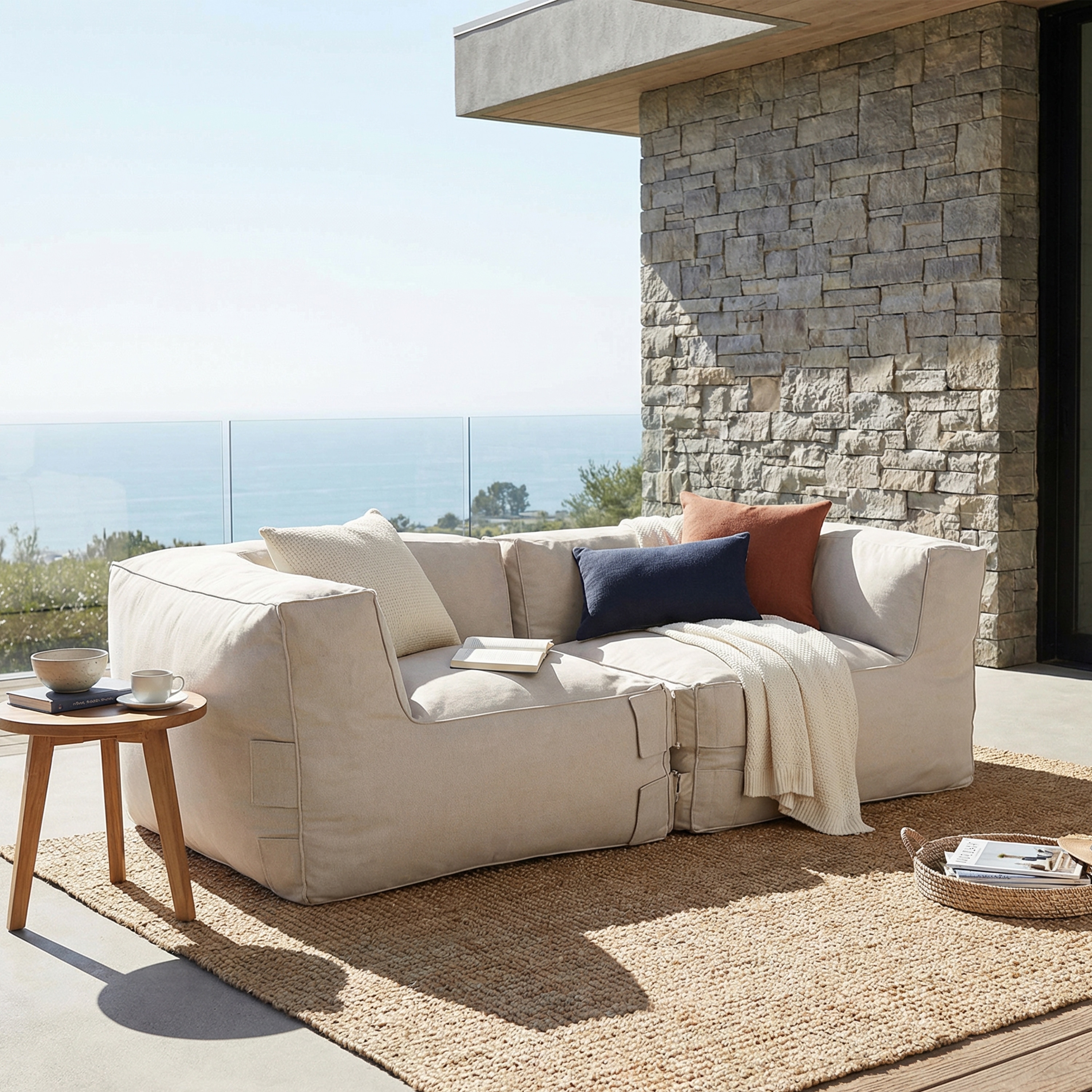 Christopher Knight Home - Nerissa Outdoor/Indoor Olefin Modular Bean Bag Corner Sofa with Shredded Foam Filled