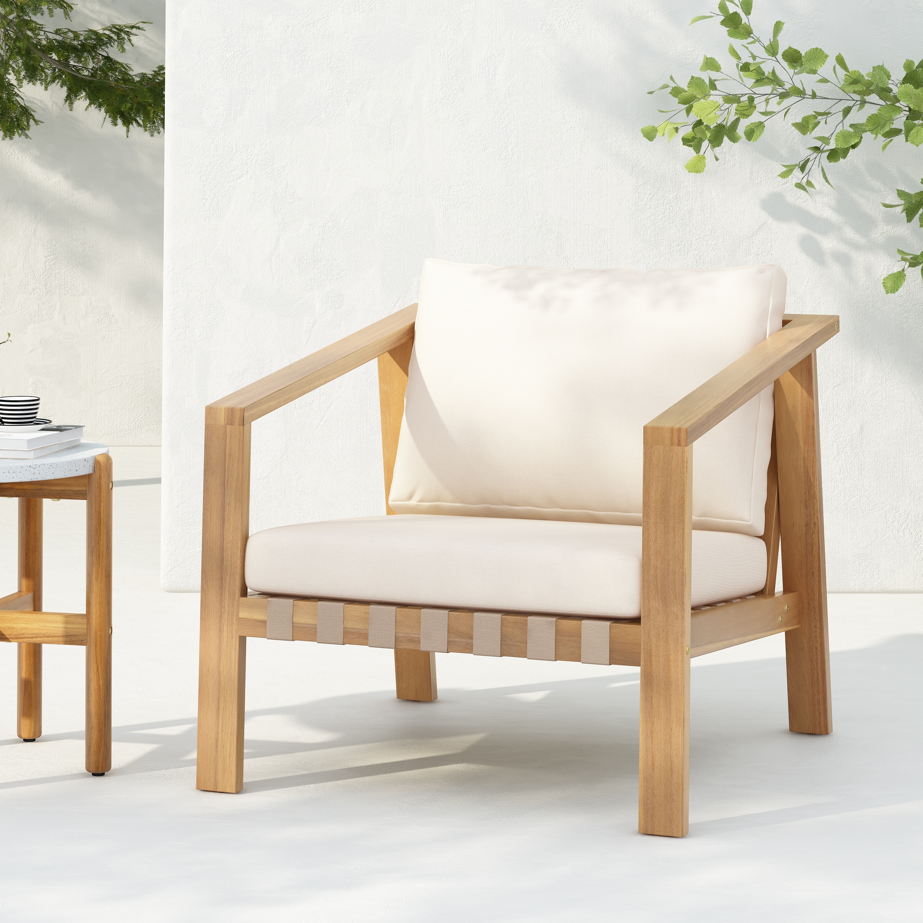 Christopher Knight Home - Modern Outdoor Acacia Wood Club Chair Set with Square Side Table Set & Water-Resistant Cushions