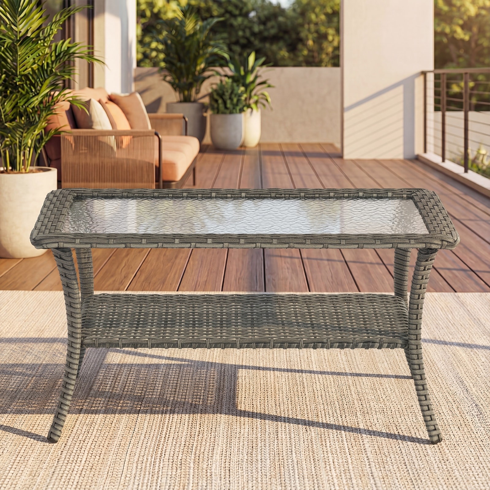 Outdoor Wicker Coffee Table with Storage Shelf