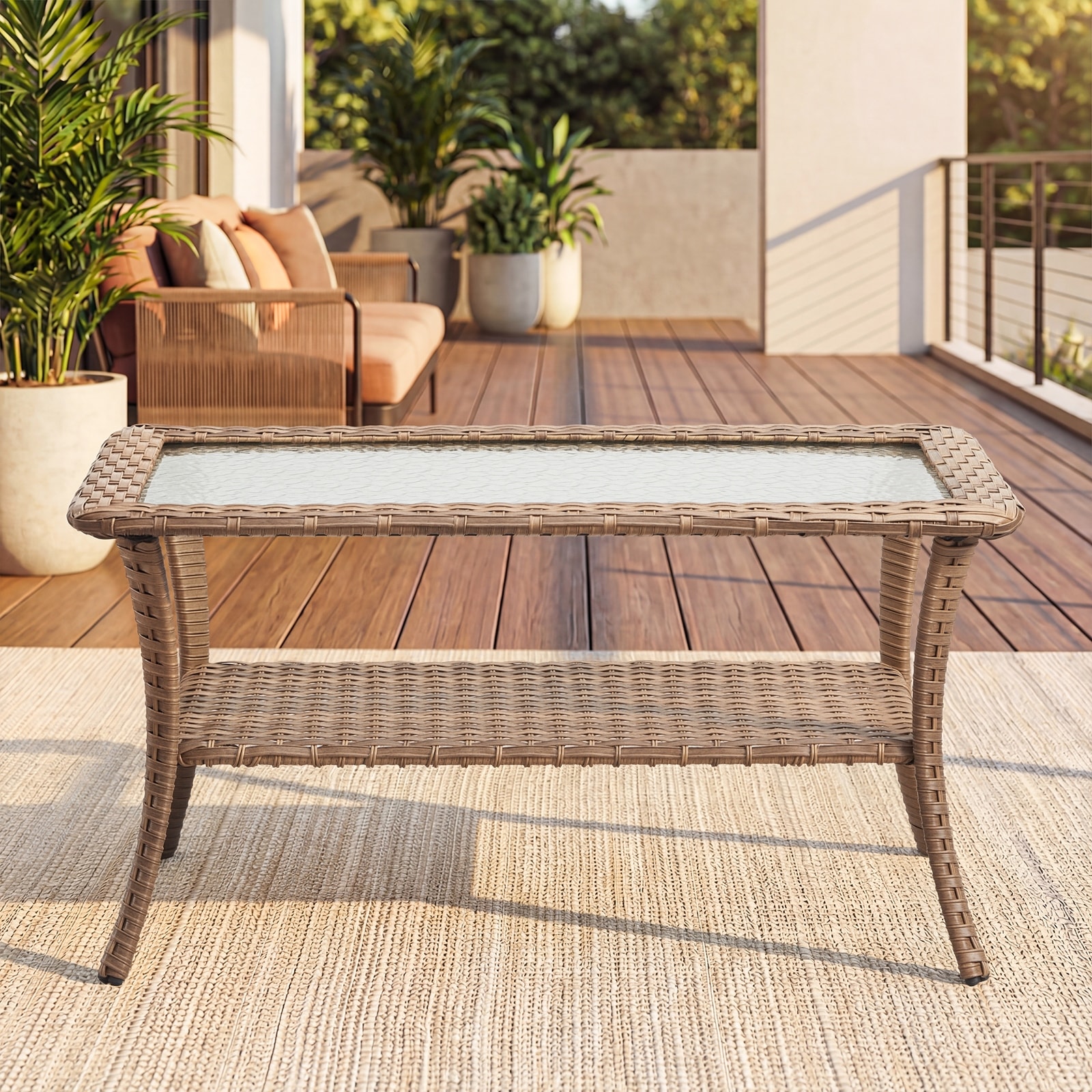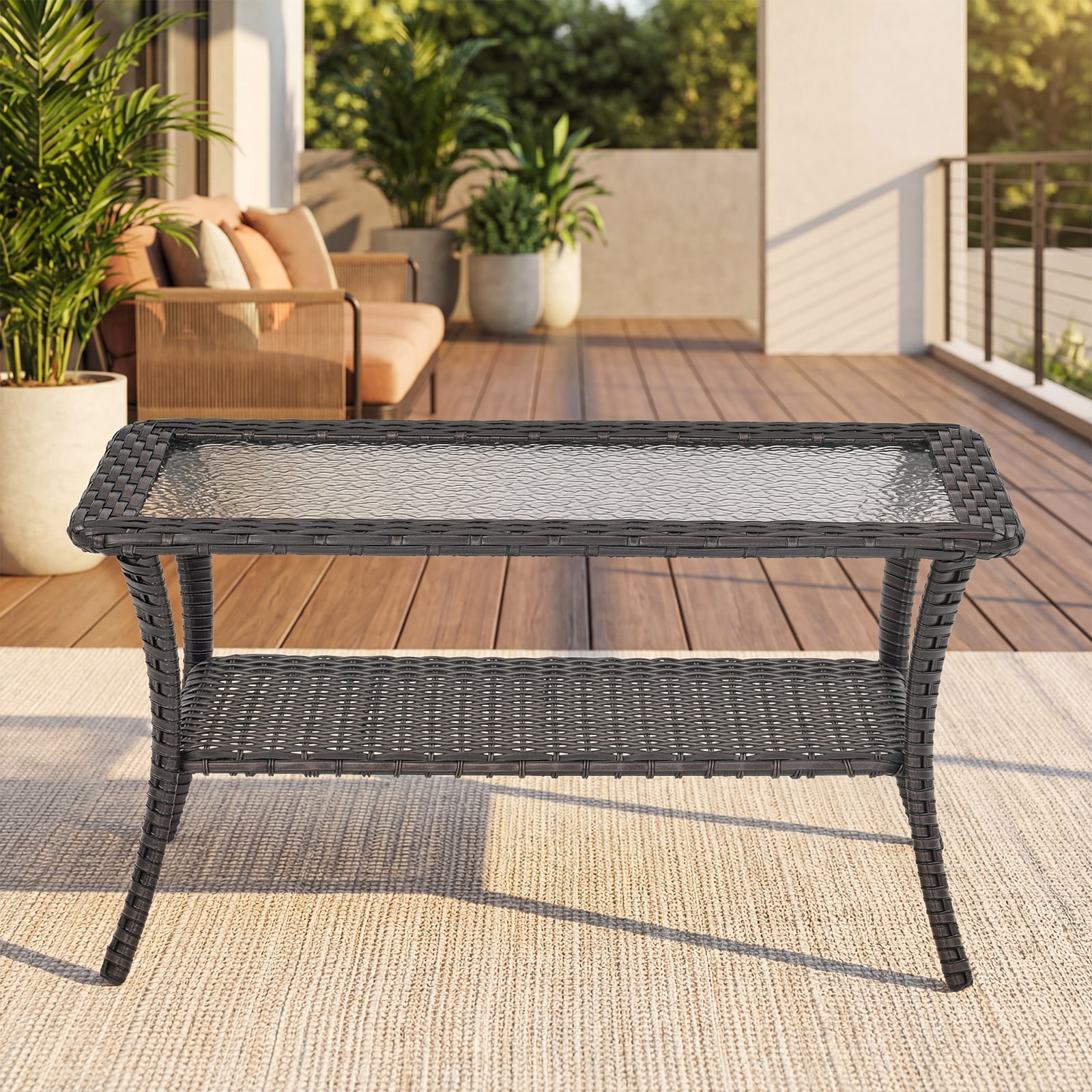 Outdoor Wicker Coffee Table with Glass Top
