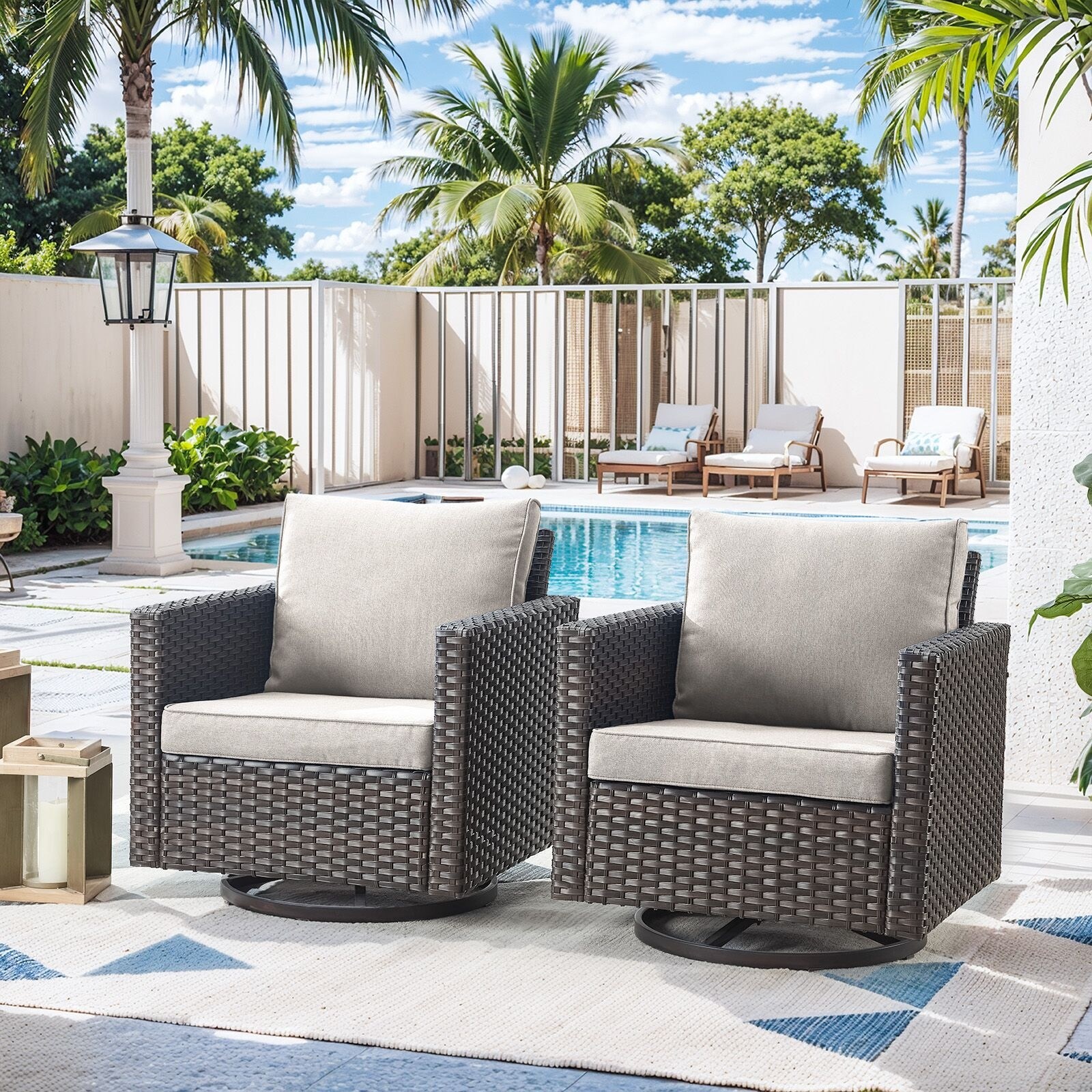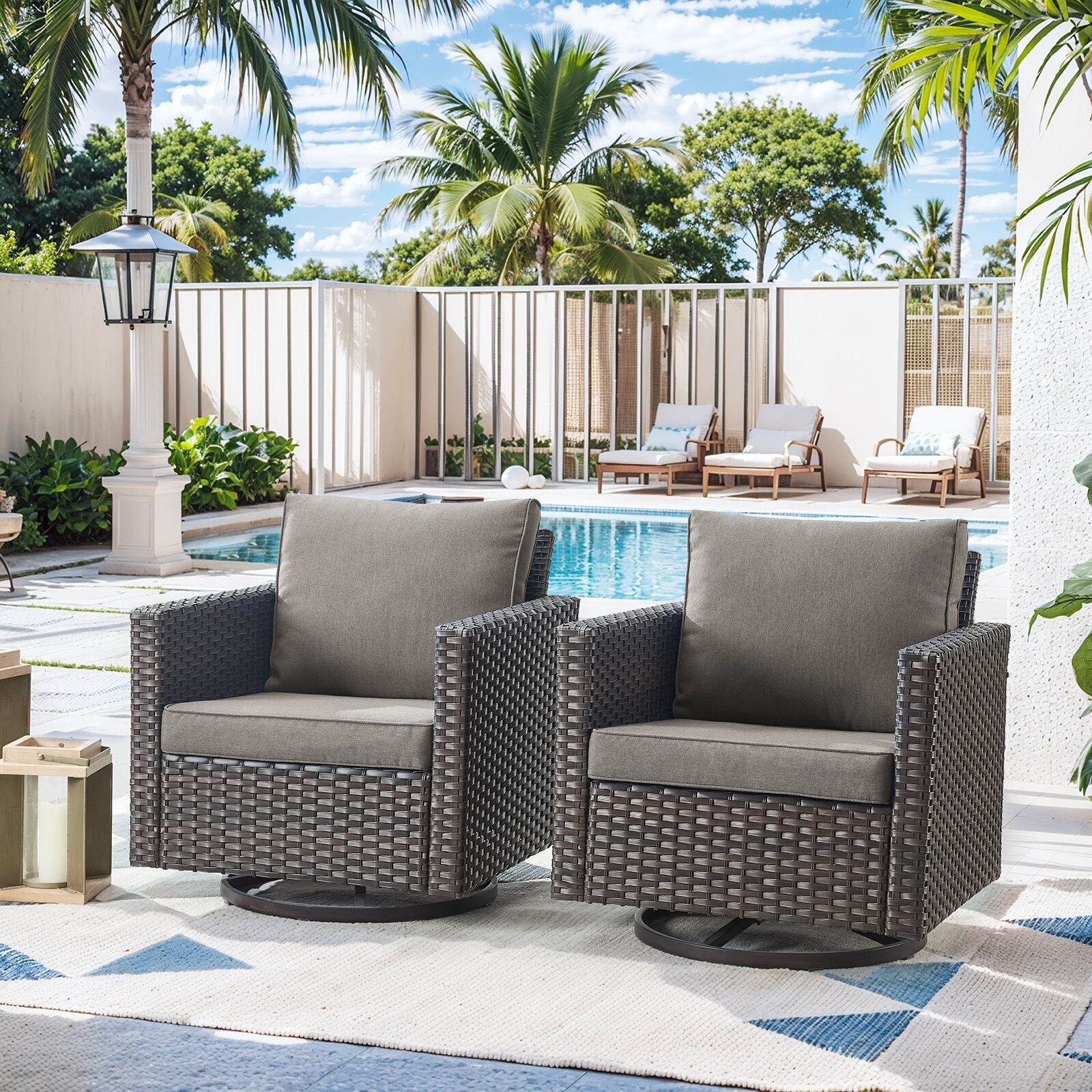Pocassy Glider Chairs PE Wicker Swivel Chairs Set of 2