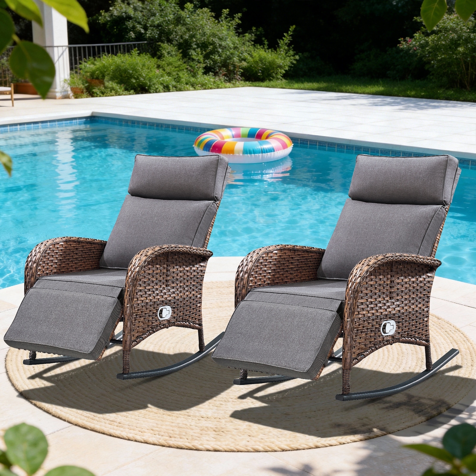 Pocassy Patio Rocker Chaise Lounge Chairs with Adjustable Backrest Set.