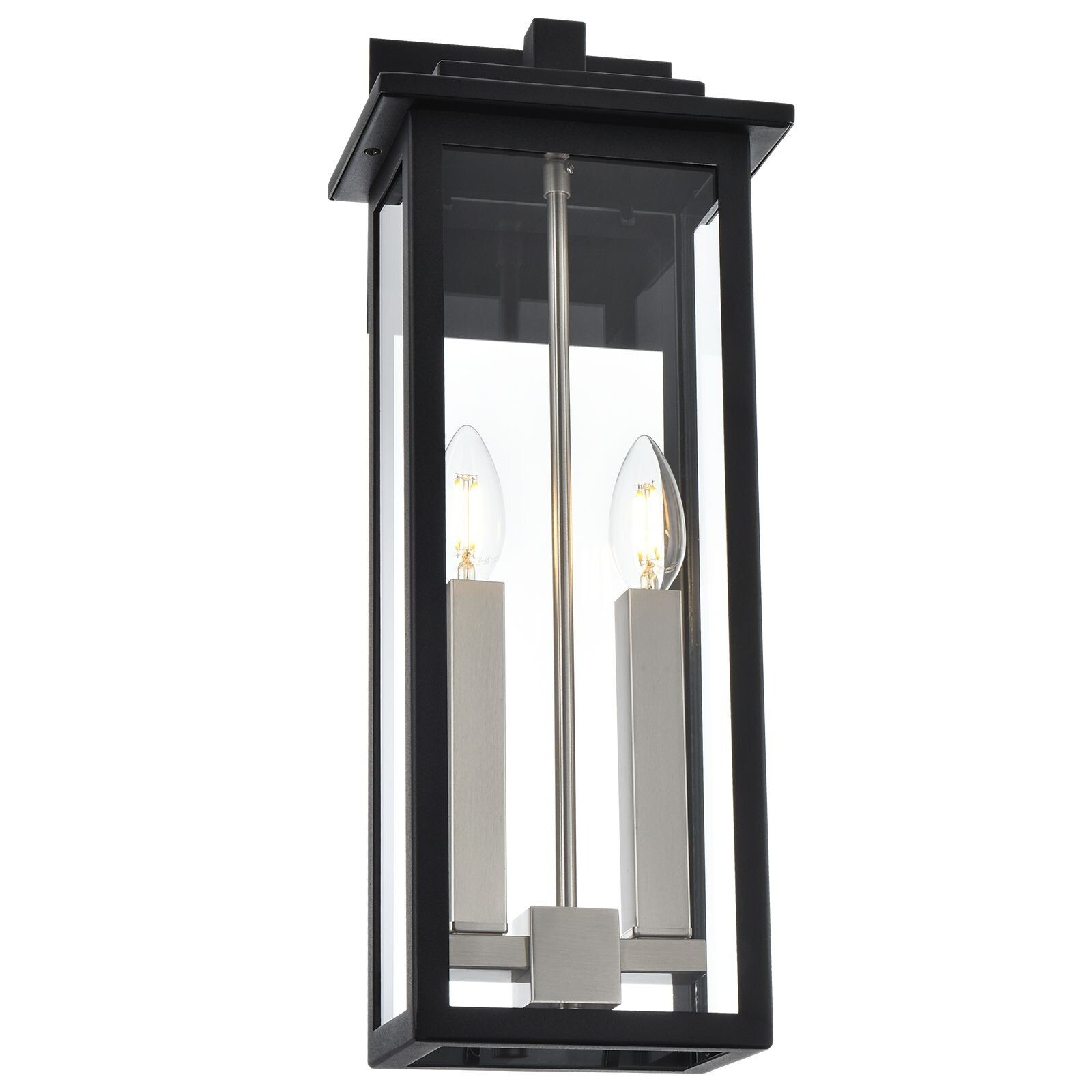 Outdoor Wall Sconce, Exterior Porch Light Wall Mount Lantern, Black and Brushed Nickel Finish with Clear Glass for House