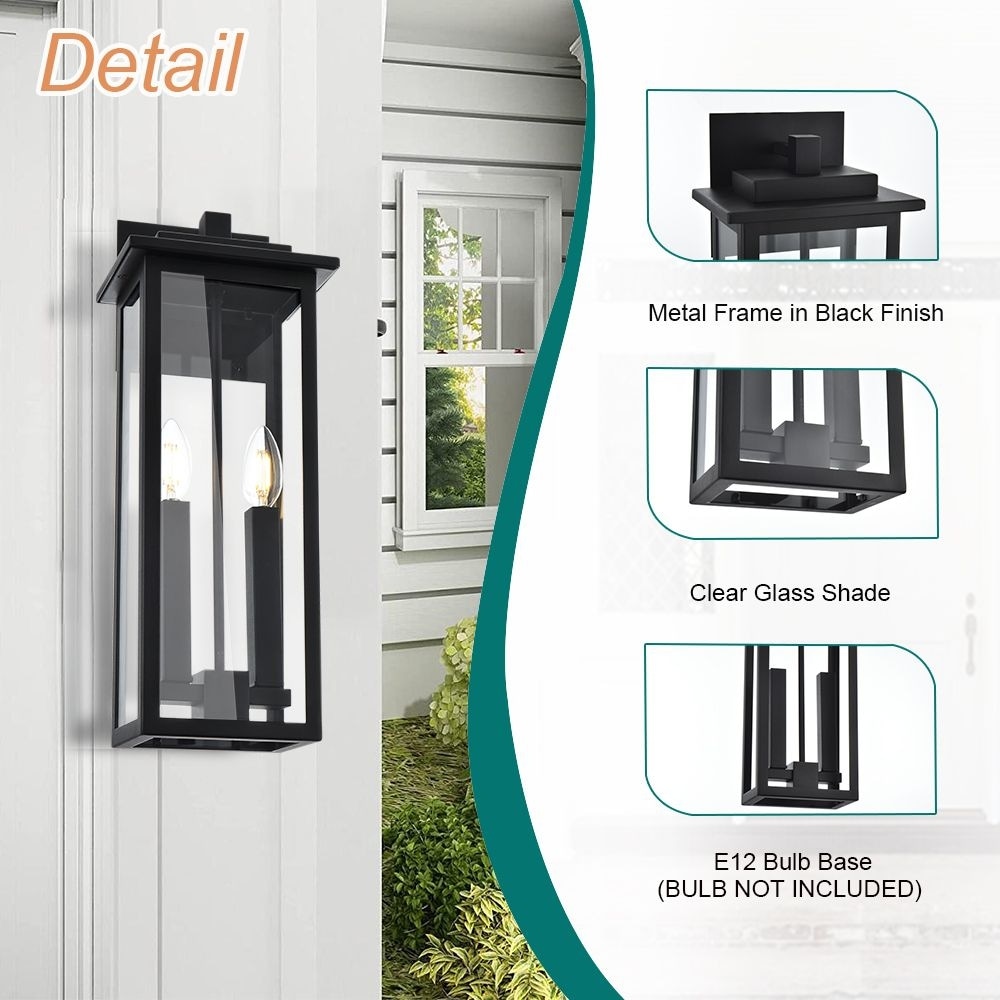 2-Light Outdoor Wall Sconce, Exterior Porch Light Wall Mount Lantern with Clear Glass for House, Farmhouse Sconces Lantern