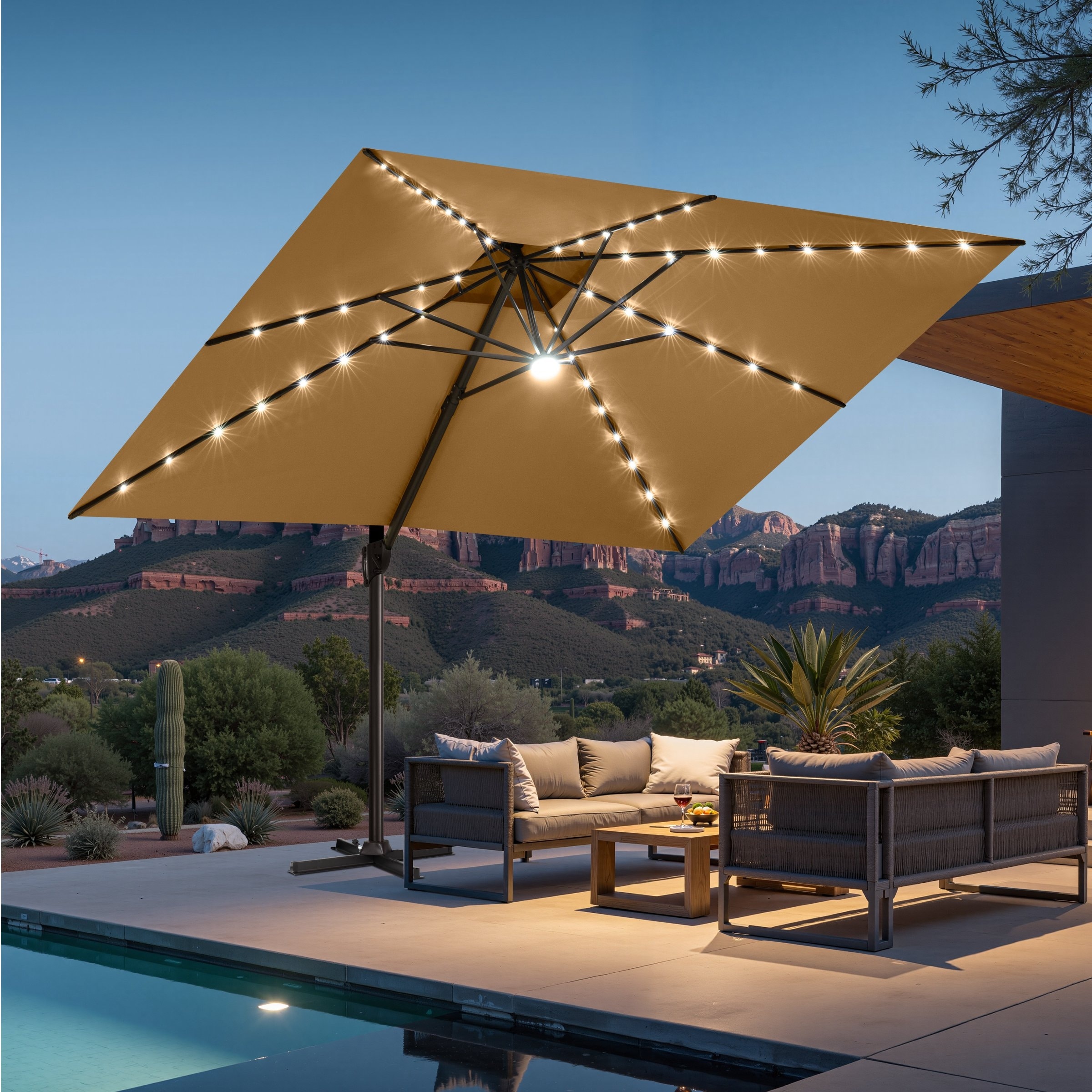 Coromose 10' x 10' Heavy Duty Cantilever Patio Umbrella, with Solar LED Lights & Weighted Base
