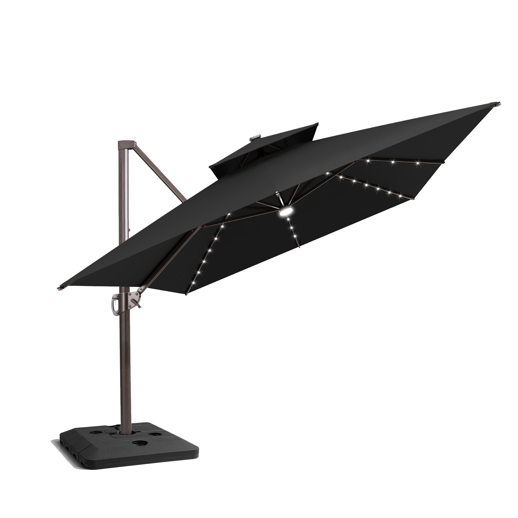 10x13 FT Outdoor Patio Double Top Aluminum Cantilever Umbrella Solar LED Lighted with 4 Piece Square Offset Umbrella Base