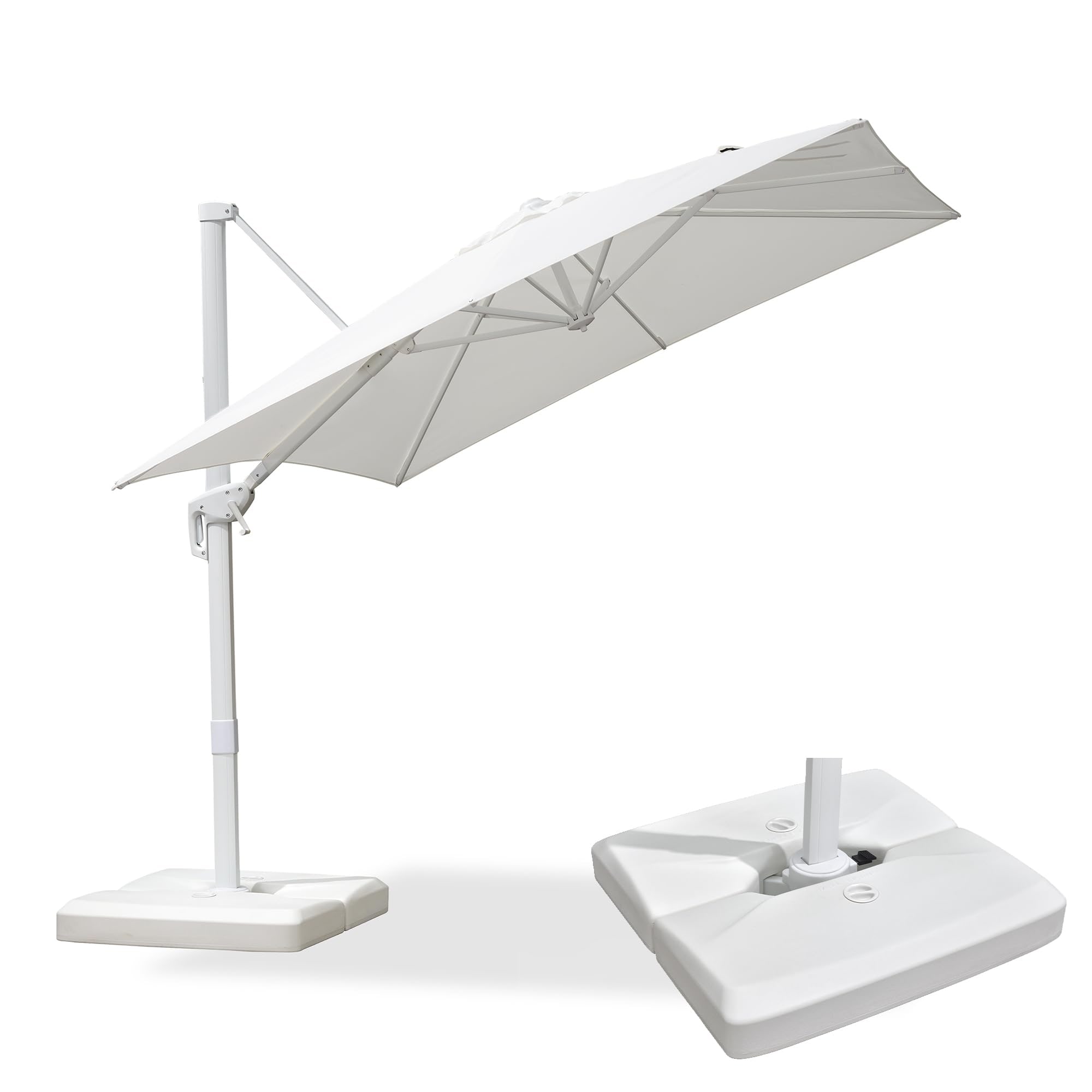 PURPLE LEAF 8 ft White Cantilever Patio Umbrella With Base