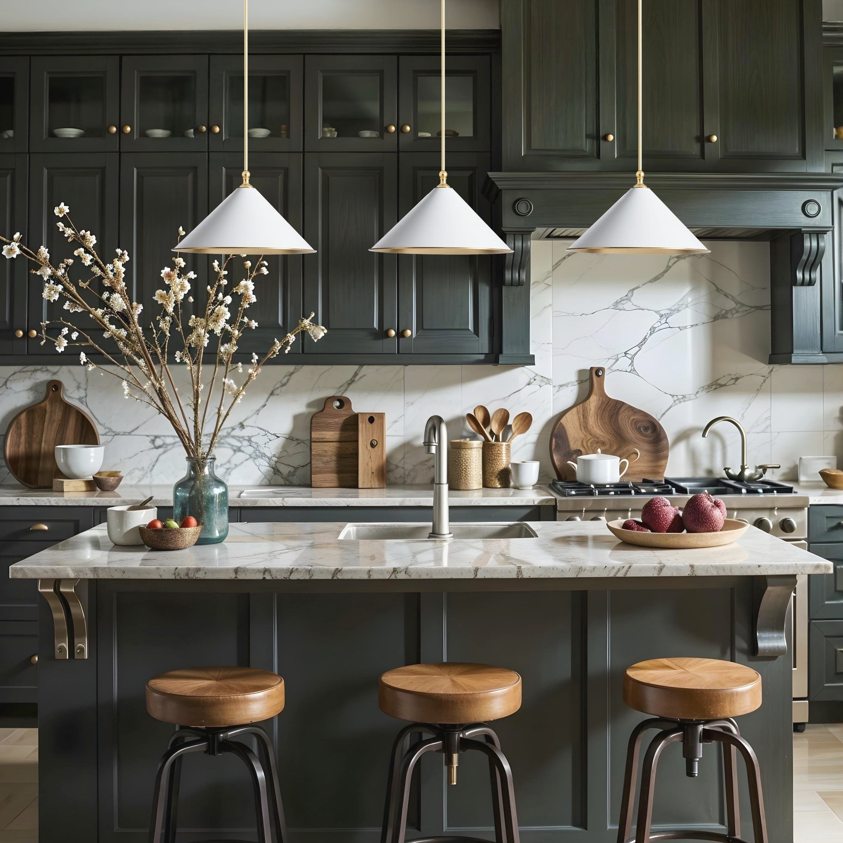 Giza Modern Pendant Light - Metal & Gold, White Cone Light Fixture For Mid-Century, Modern, Contemporary Room Decor