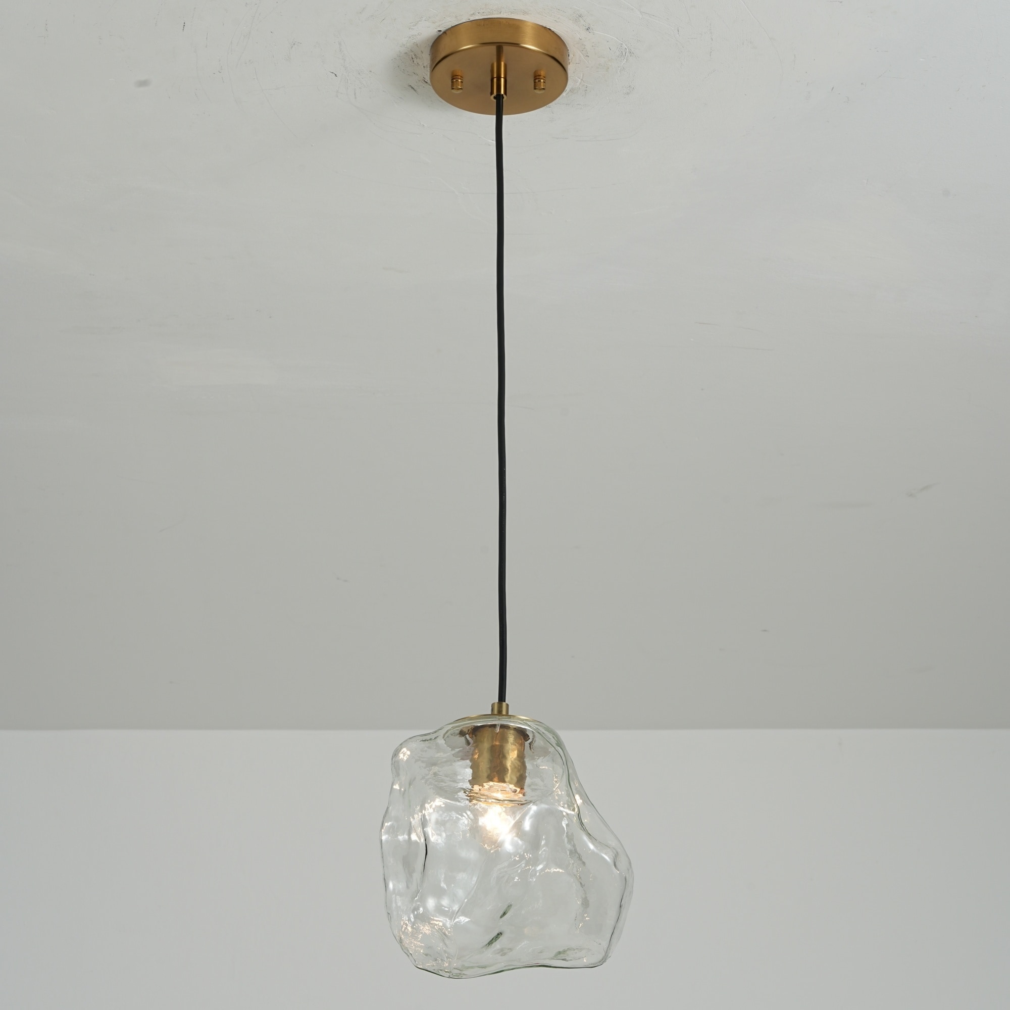 1-Light Modern Minimalist Brass Irregular Glass Pendant for Kitchen Island & Bedroom - 8.7 in. W x 8.7 in. H