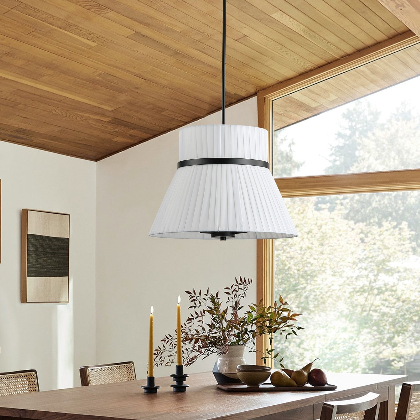 Matte Black 3-Light Pendant Lighting with White Pleated Fabric Shade