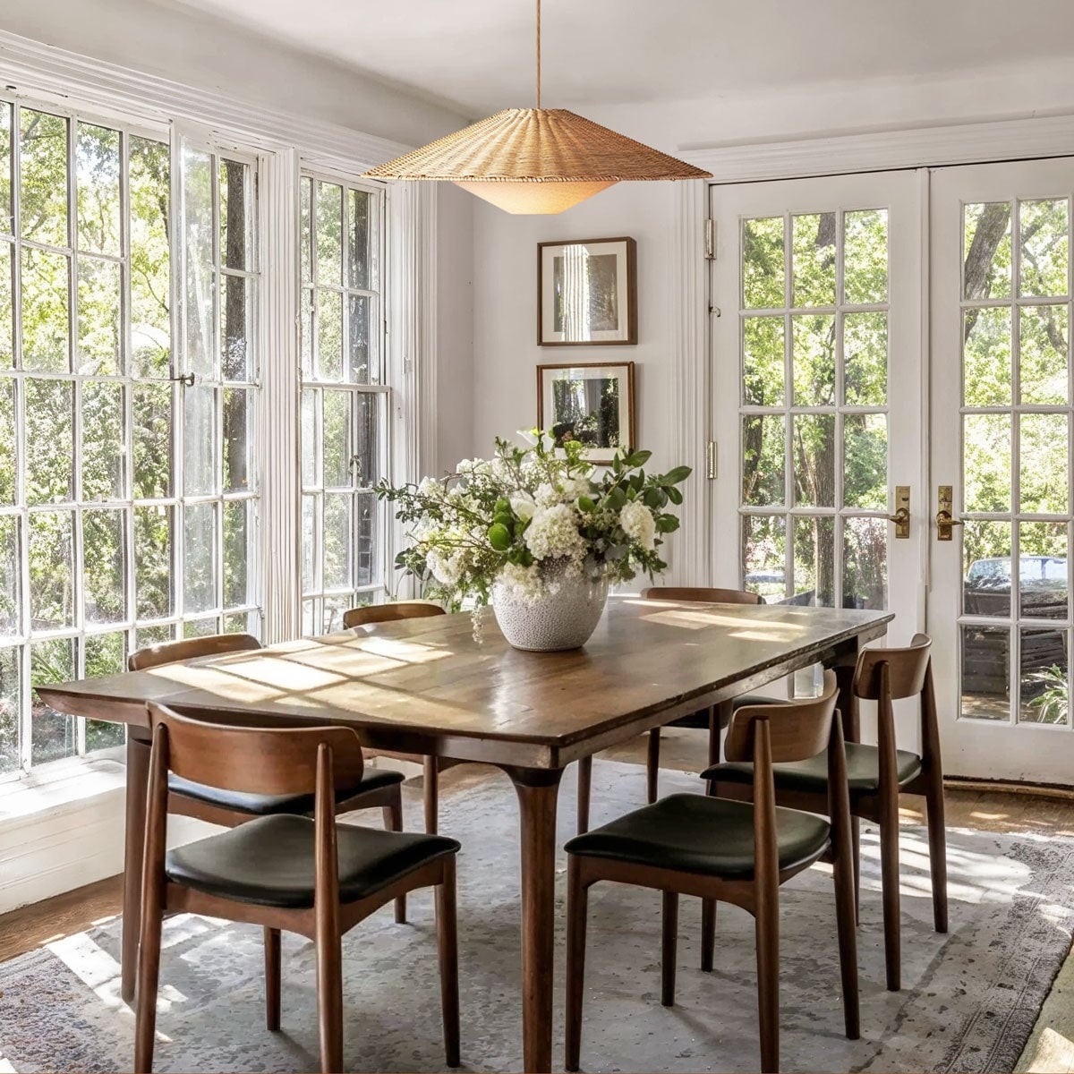 Sunny Rattan Pendant Light - Natural Large Cone 1-Light Handwoven Light Fixture For Modern, Transitional, Farmhouse Room Décor