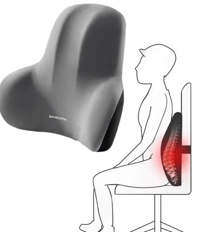 Memory Foam Lumbar Back Cushion Multi Functional Pain Relief Support Pillow (16.9 By 3.9 By 13.4 In) gray
