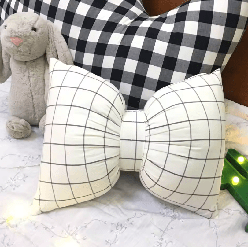 StripeBliss Plush Lumbar Support Pillow Pink Bow Sofa & Office Cushion (25 By 18 Cm 9.8 By 7.1 In) white