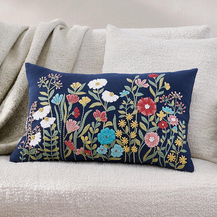 Taliah Floral Embroidered Pillow - Grandin Road