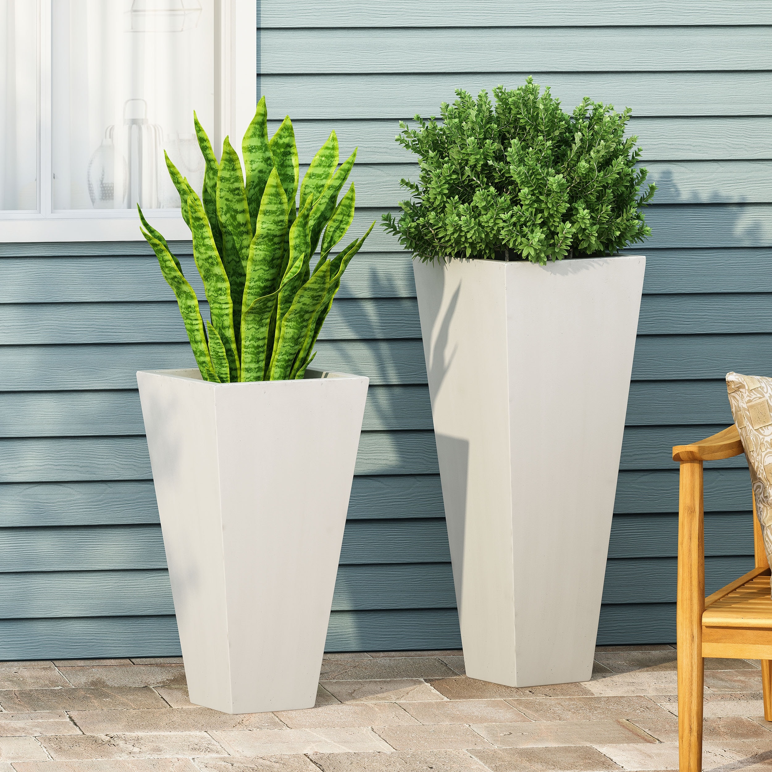Ella Outdoor Modern Large and Small Cast Stone Planter Set by Christopher Knight Home
