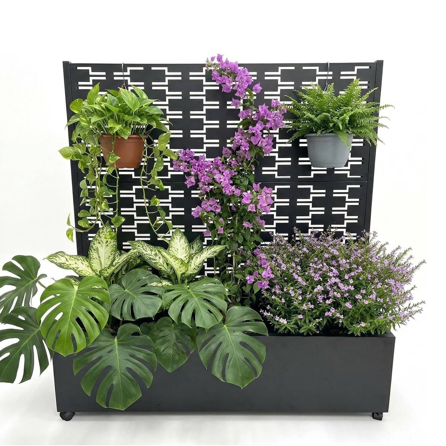 47"*47"*16" Galvanized Raised Garden Bed with Trellis, Planter Box with Privacy Screen, Wheels