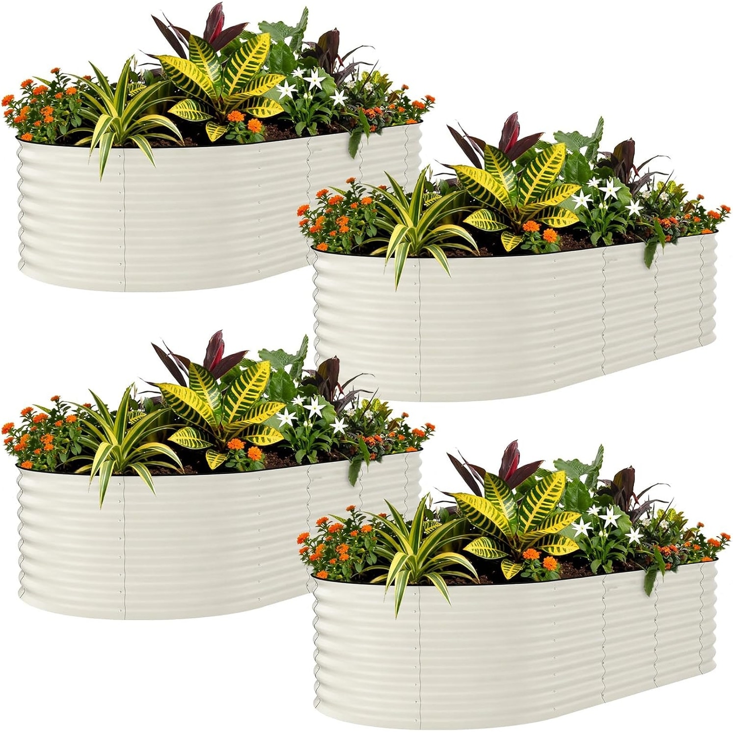 4-Pack Galvanized Raised Garden Beds 8x4x2ft, Large Metal Planter Boxes for Vegetables & Flowers, Beige - 8x4x2FT