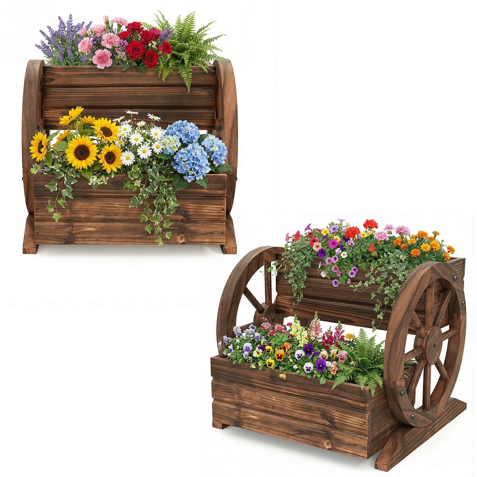 1/2 PCS Garden Planter w/ Drainage Holes Wooden Wagon Planter Box