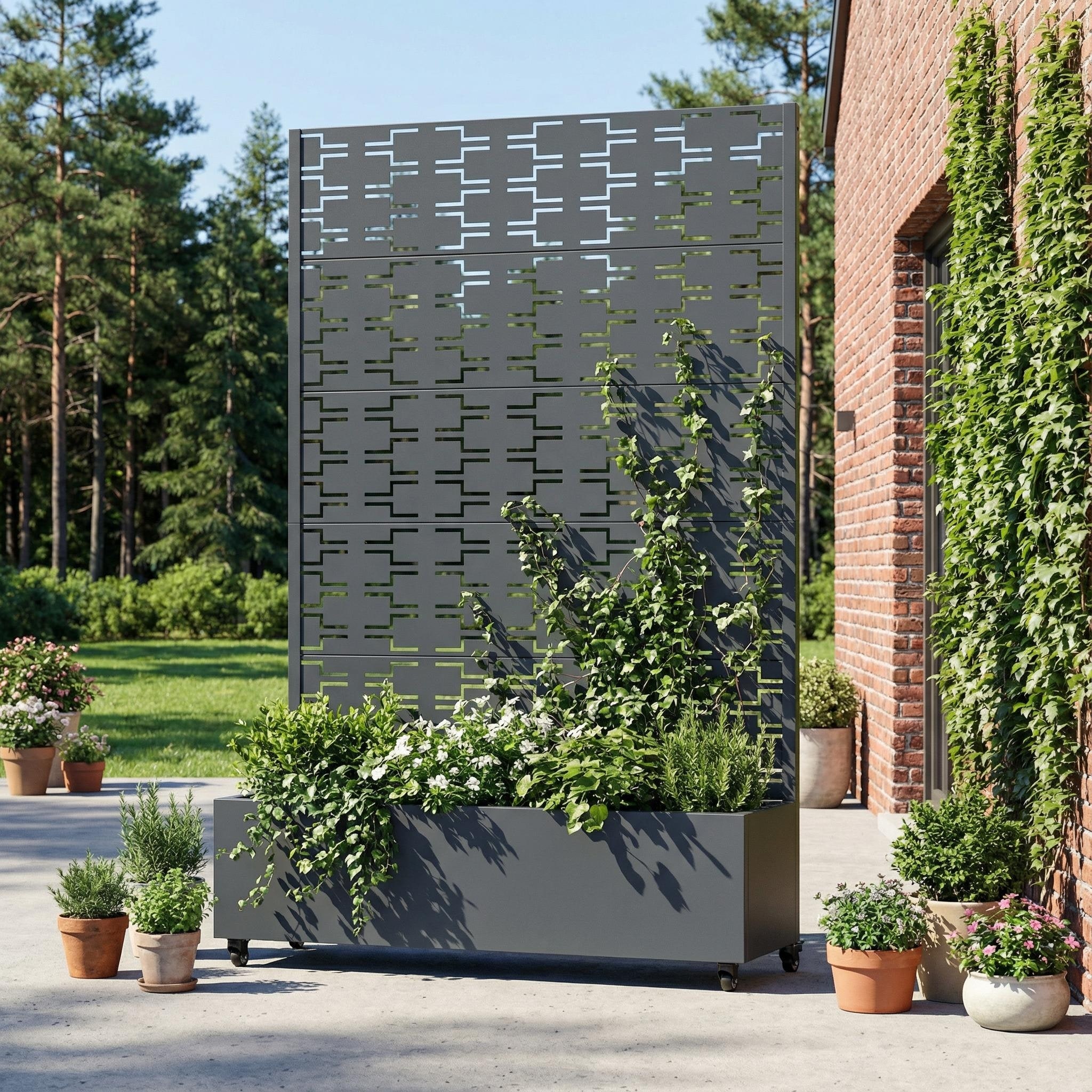 Metal Planter Box with Trellis Privacy Screen Planter Box with Lockable Wheels