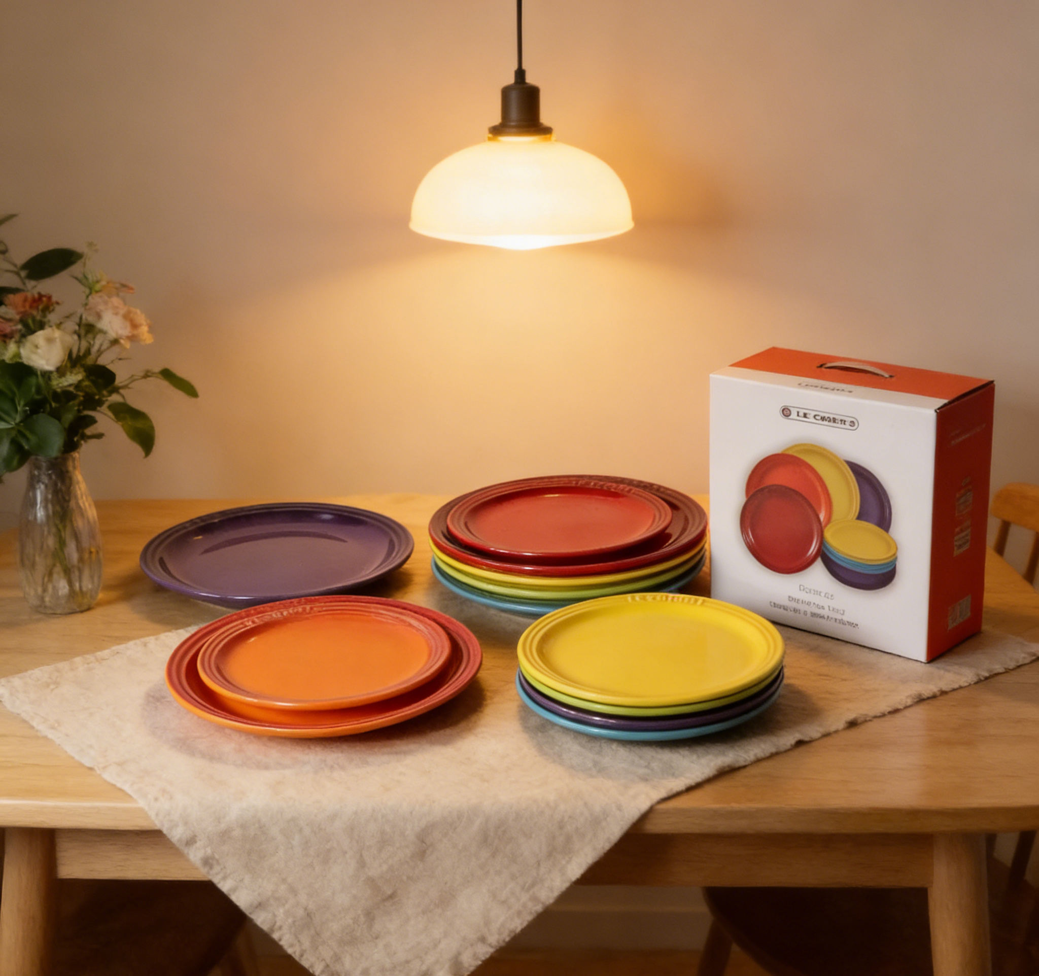 Rainbow Enamel Dinner Plates Set Colorful Round Decorative Tableware red