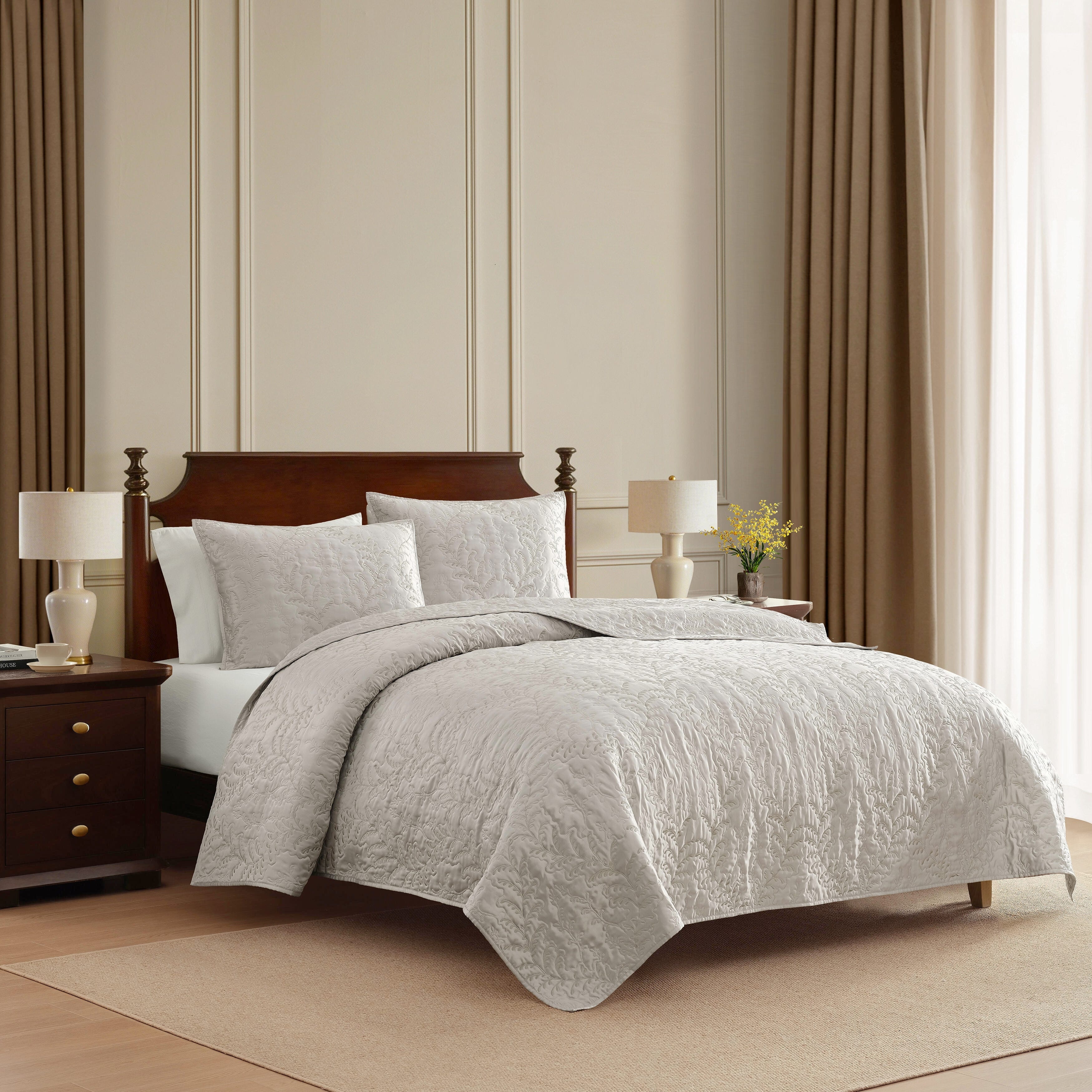 Greenland Home Fashions Tropics Finely Stitched Palm Leaf Reversible Quilt Set