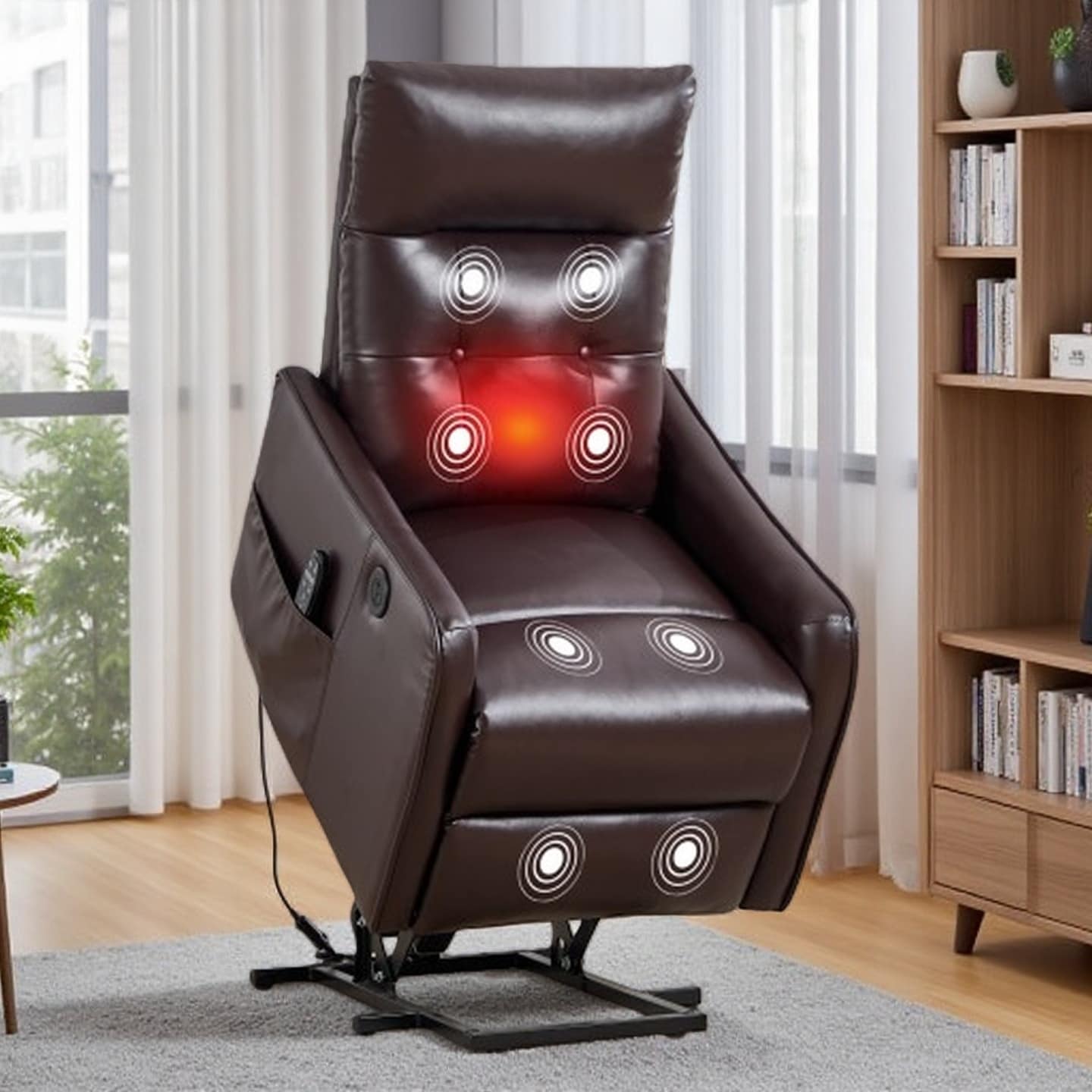 Single Motor Power Lift Recliner Chair with 8-Point Massage, Lumbar Heat, USB Charging, and 155° Recline