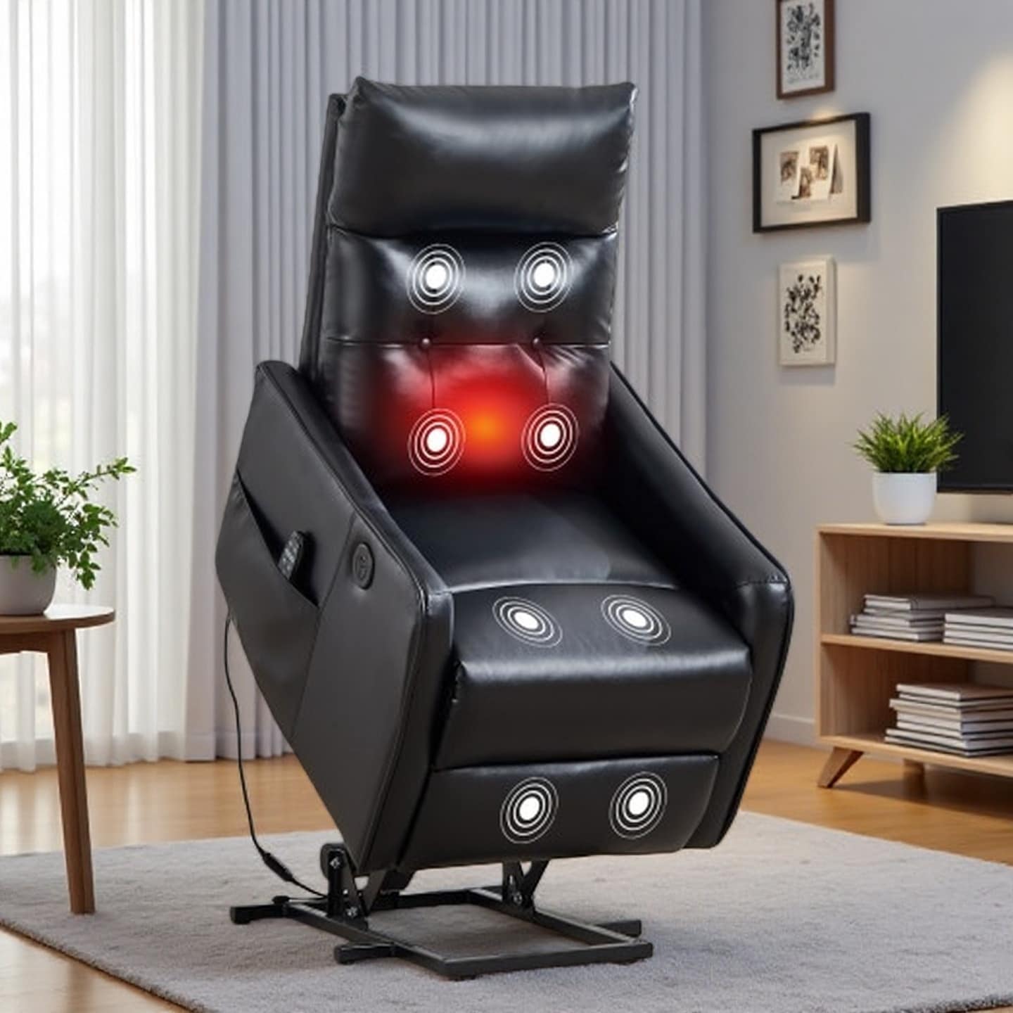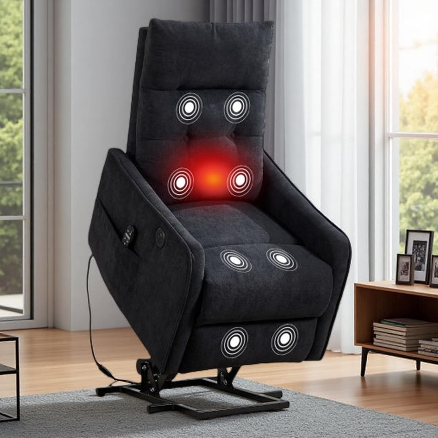 Single Motor Power Lift Recliner Chair with 8-Point Massage, Lumbar Heat, USB Charging, and 155° Recline