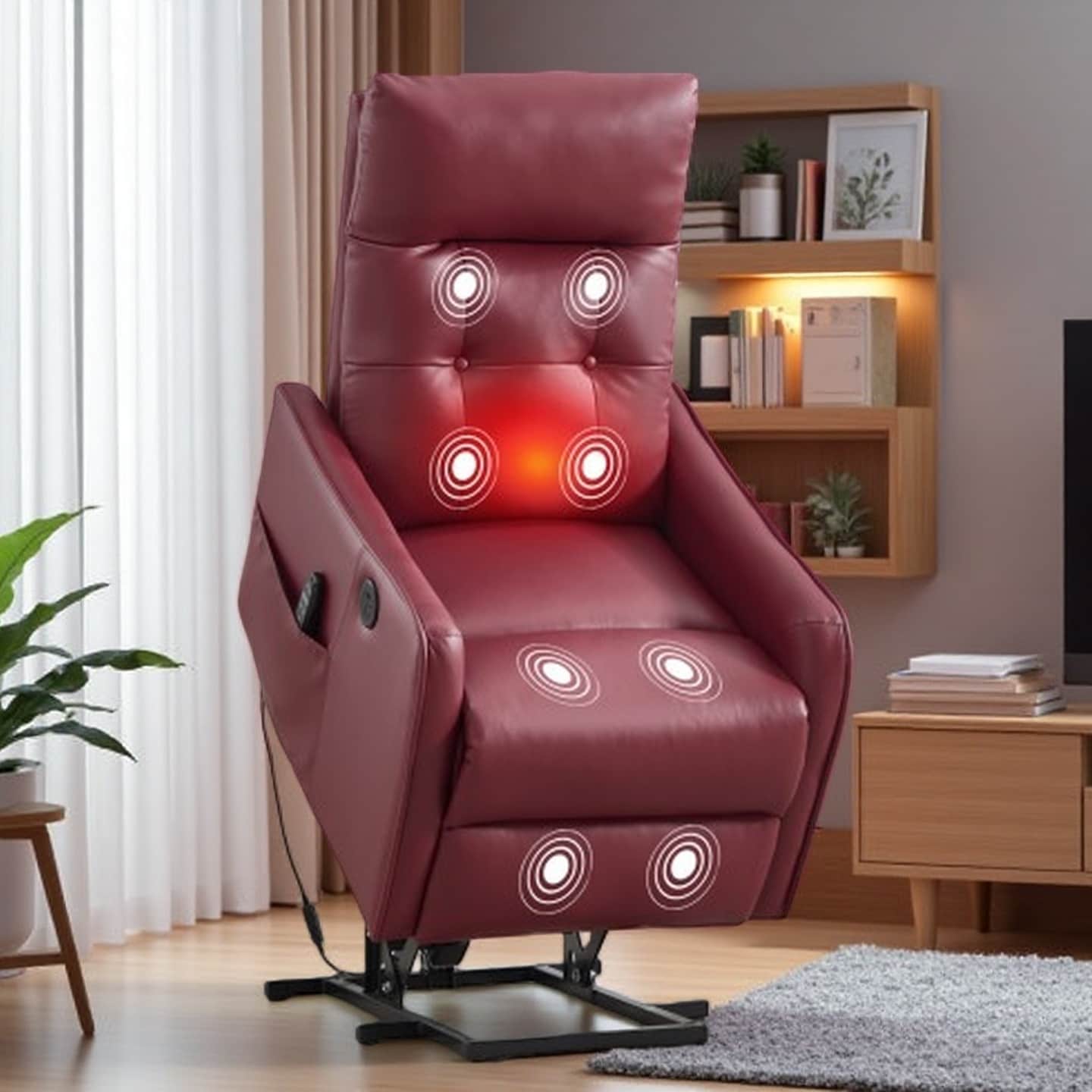 PU Power Lift Recliner for Elderly with 8-Point Vibration Massage, Lumbar Heat, USB Charging, Cup Holders, High Backrest
