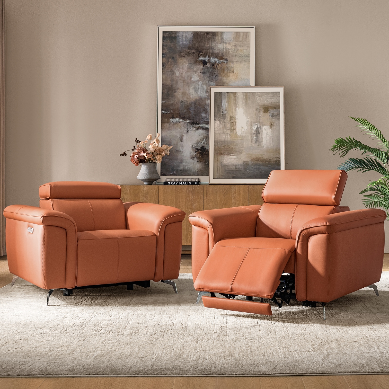 Jacindo 45.5"W Modern Genuine Leather Power Recliner with Adjustable Headrest and USB Port Set of 2 By HULALA HOME